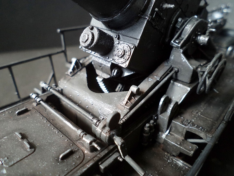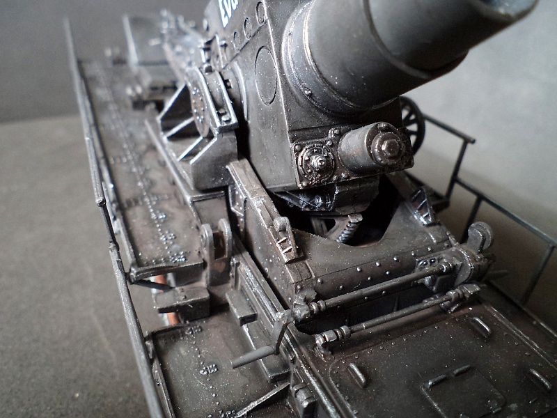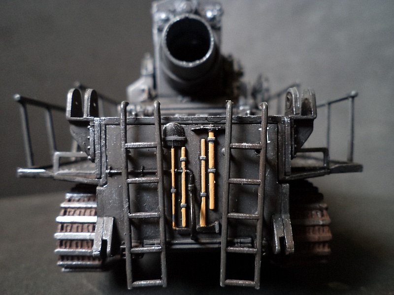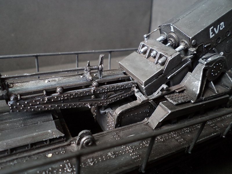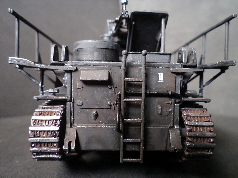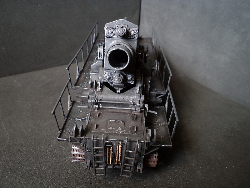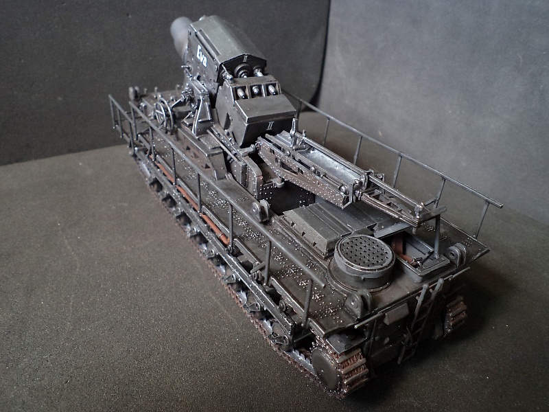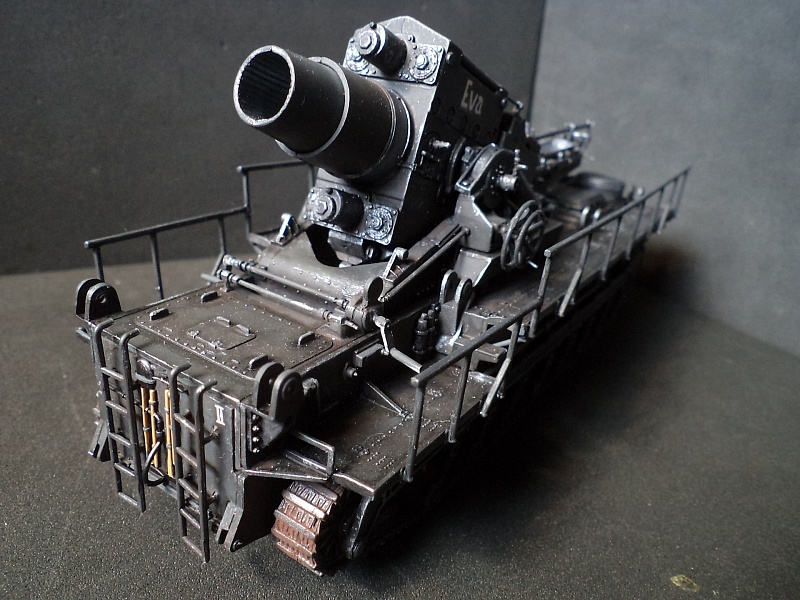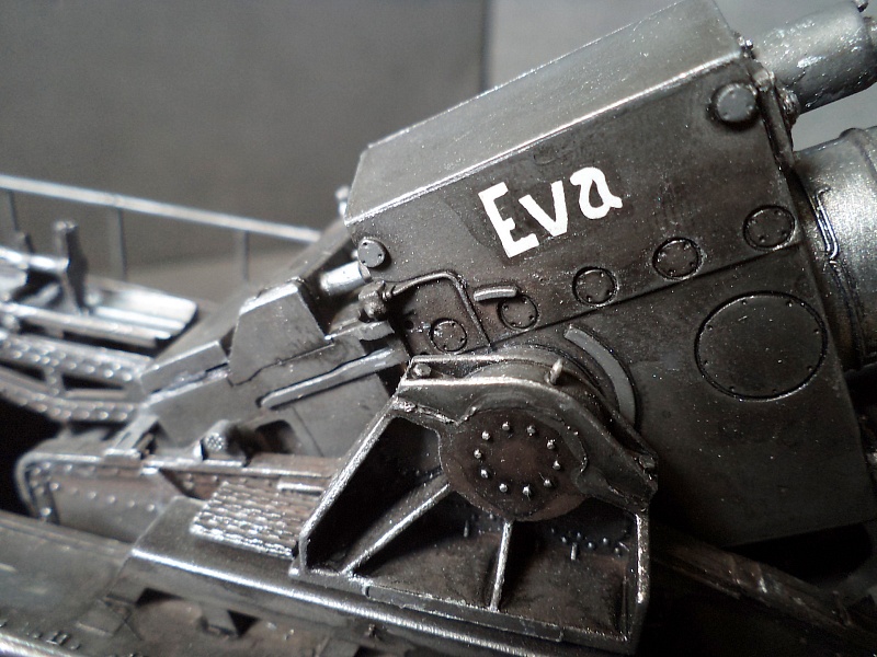 | Самоходная мортира «Карл» (нем. Gerät 040 - изделие 040; после модернизации - нем. Gerät 041) - немецкая тяжёлая самоходная мортира периода Второй мировой войны. Всего было построено семь экземпляров. Использовались при штурме крепостей и сильно укреплённых позиций противника. Фирма «Рейнметалл-Борзиг» изготовила один прототип и шесть боевых самоходных мортир. Поскольку установки были единичными изделиями, каждая из них получила собственное имя: I - «Адам» (нем. Adam), позднее переименована в «Бальдур» (нем. Baldur); II - «Ева» (нем. Eva), позднее переименована в «Вотан» (нем. Wotan); III - «Один» (нем. Odin); IV - «Тор» (нем. Thor); V - «Локи» (нем. Loki); VI - «Циу» (нем. Ziu); VII - «Фенрир» (нем. Fenrir) - прототип - не участвовал в боях. В ноябре 1940 года первая мортира, «Адам», была передана в войска. До середины апреля 1941 года были сданы три установки - «Ева», «Тор» и «Один», а к концу августа ещё две - «Локи» и «Циу». Существовала также седьмая установка, названная именем «Фенрир», однако она использовалась в основном для испытаний и не применялась в боях. Возможно, под этим именем имеется в виду установка-прототип, построенная в мае 1940 года. Модели в масштабе 1/72 выпускают Hobby Boss и Hasegawa. В данном случае представлено орудие с 60см стволом и ранней ходовой частью, имеющее имя собственное Eva. Собрано из коробки, крашено акрилом, ржавчина Wilder. 2015-04-25 |