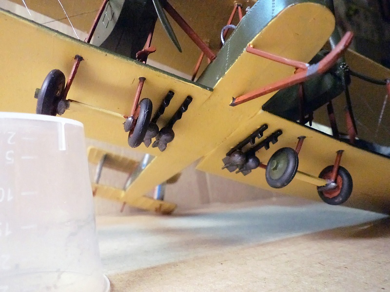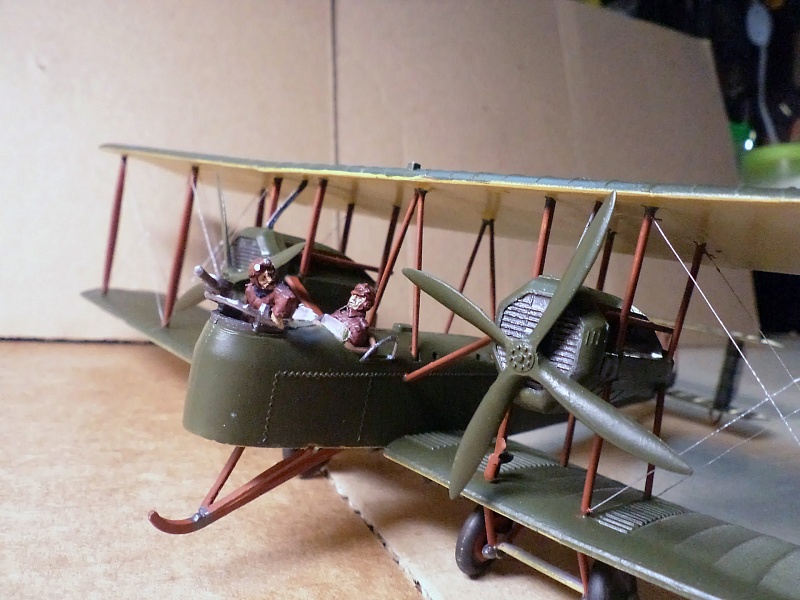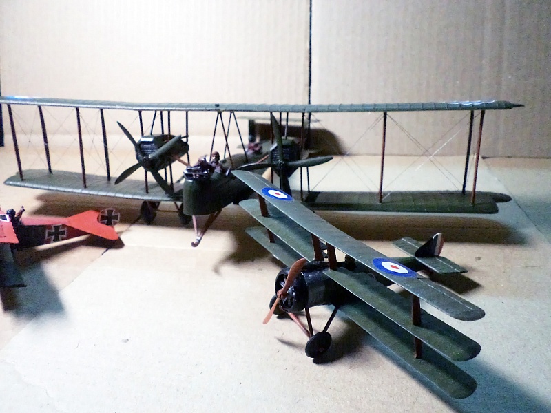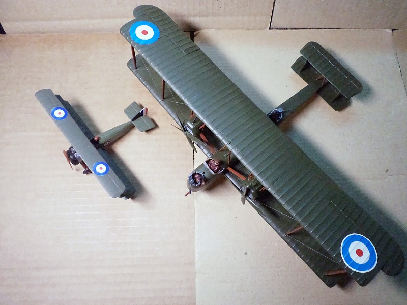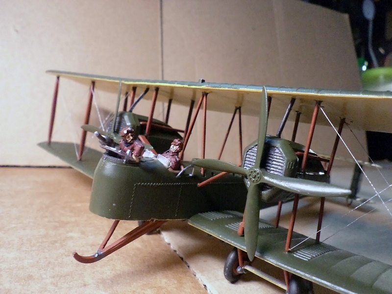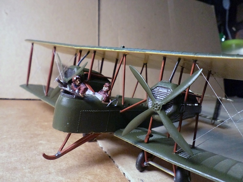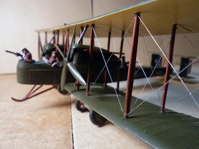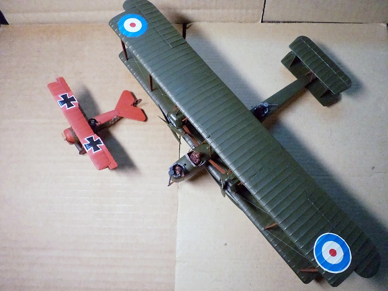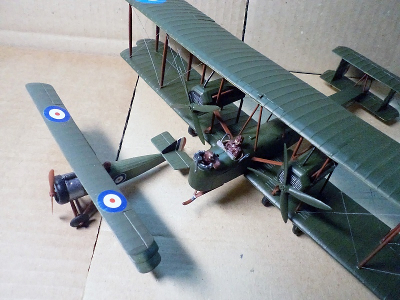 | Британский бомбер Первой Мировой войны Вообще-то он почти не успел на саму войну, в серию пошел уже после окончания. Но зато он большой и ужасный. Там есть пара фоток с трипланами - для масштаба. Первый опыт ставить растяжки между крыльями. Не очень удачно получилось, и вряд ли у меня получится сделать растяжки на мелких самолетах. Руки уж не те, и пинцет не особо спасает. Собрано из коробки, крашено акрилом, фигурки Dark Dream Studio 2015-01-17 |