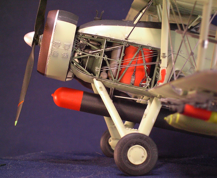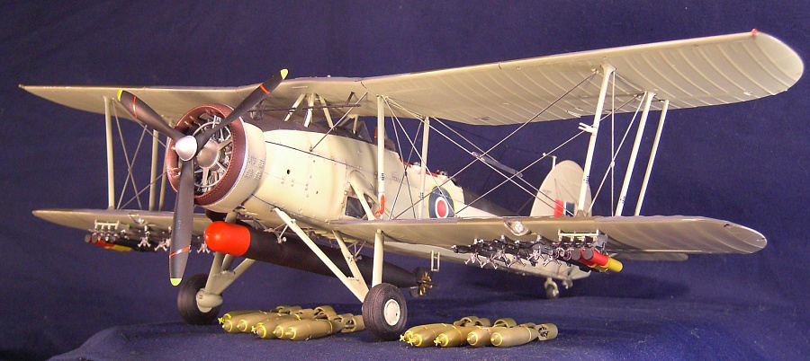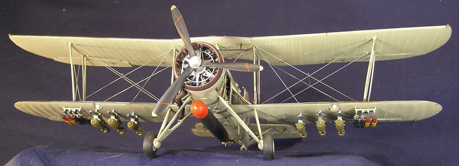 | Приветствую. Предлагаю вашему вниманию свою очередную модель. От себя добавил несколько моментов: Для оживления модели вырезал часть обшивки в носовой части ,по фотографиям изготовил необходимые детали в этих отсеках. АНО самодельные . Кроме того усилил лонжерон верхнего крыла ибо родной не внушал доверия. Окрашено эмалями Gunze, по схеме предлагаемой изготовителем. Подобная окраска предположительно применялась в 816 , 835 , 836, эскадрилиях в 1943 г. Масштаб 1:32 | |