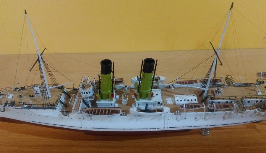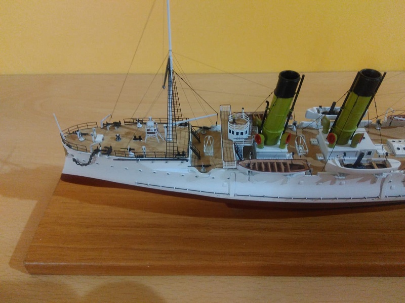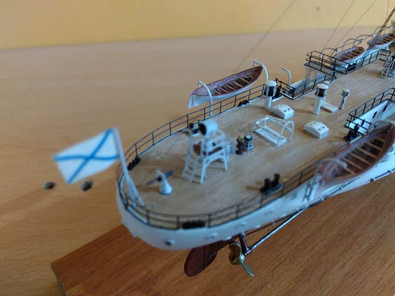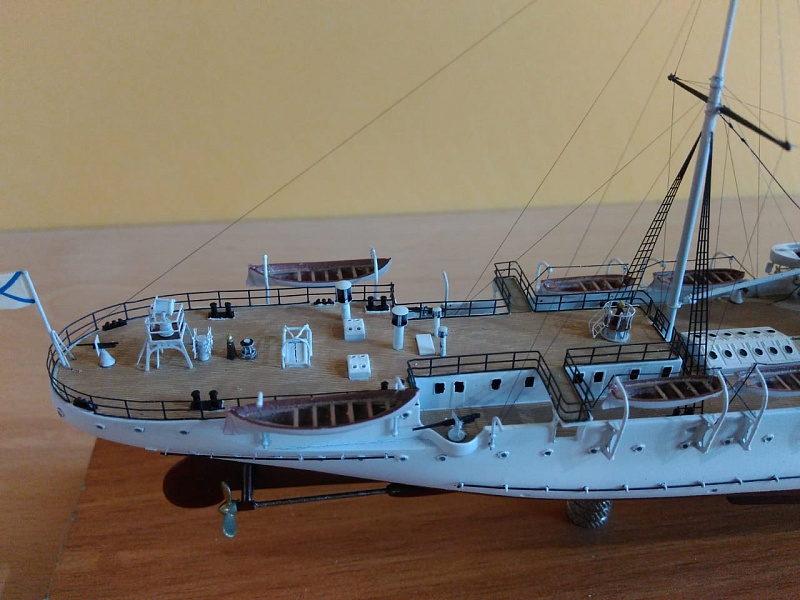 | Здравствуйте Друзья и Коллеги! Представляю Минный транспорт " Амур ", по состоянию Весна-Лето 1904 года в моей любимой "Белой" окраске. Прототип конечно замечательный. Самый результативный корабль нашего флота за всю историю. Уничтожение ДВУХ ЛИНКОРОВ за ОДИН боевой выход говорит само за себя. Все таки передовой способ постановки мин должен был сказаться. Плюс выучка команды и решительность Командира , капитана 2-го ранга Ф.Н. Иванова 6-го. Он позволил себе ослушаться приказа и выставить заграждение по своему разумению. В итоге броненосцы "Хацусе" и "Яшима" погибли. Иванов оказался прав, а победителей не судят. Все эти события, а так же история всей службы "Амура" и "Енисея" и их последующих инкарнаций, истории проектирования и строительства изложены в книге В. Я. Крестьянинова "Минные заградители типа "Амур" 1895-1941" В книге много фотографий, которые и были основным подспорьем в работе с моделью. С чертежами совсем плохо. Советовался со знающими коллегами по поиску чертежей, но понял, что сведений по ним почти нет и на сколько затянется поиск- вопрос скорее риторический. Что получилось, отдаю на Ваш суд.По модели. "Новый Комбриг" выше всяческих похвал. Все складывается, стыкуется идеально. Хорошая мелочевка, неплохое травление. Добавил иллюминаторы. Рангоут паяный. Окраска "Mobihel", НЦ и Тамиевские акрилы. Такелаж-бантик. Приятного просмотра.С Уважением, Иван. |