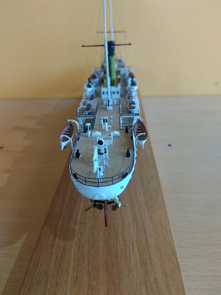 Хотел побурчать по поводу артиллерии/бедновато раздраконена/ потом вспомнил,что это 1/350 и не стал. А вот якорная цепь переразмерена. Да,и почему леера черные? При общем белом колере?Не логично. Но работа хорошая. Галерея.