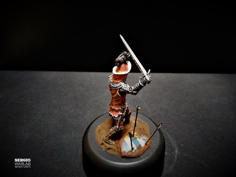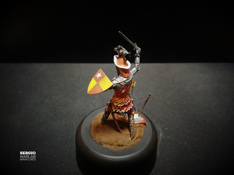 | Перед вами очередной участник столетней войны, английский аристократ Джон де Вер. Показан эпизод знаменитой битвы при Креси, где наш герой достойно проявил себя. Использовалась фигура 54 мм из белого металла, гипс, акрил ХоМа. |