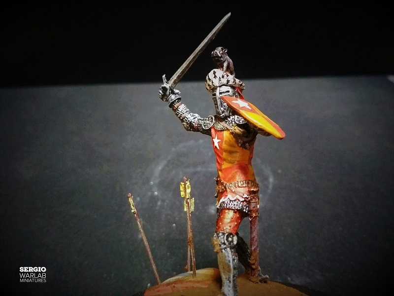 Этот поинтереснее выглядит чем гладиатор. Но Вы по прежнему снимаете под прямым светом лампы. Что на пользу фото не идет, свет бликует на фигурке. Со щитом истыканным стрелами задумка хорошая, но загрязненность на щите спорно выглядит. Края измазюканы со всех сторон одинаково а в серединке чистый. По чумазым щитам есть Поповиченковский гайд. Полюбопытствуйте, довольно интересно.