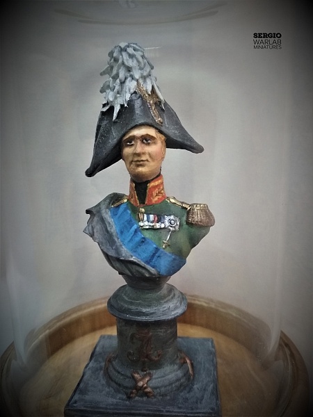 | Перелив бюста EK. Масштаб 1/16, белый металл. Подставка ольха (мастер D.Zorin), стекло. Качество деталировки и отливка бюста - ниже среднего уровня - в результате были определенные сложности при росписи. Всем приятного просмотра. | |