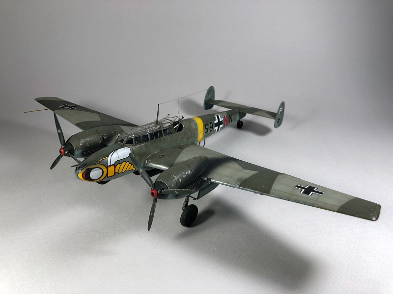 Bf 110 E S9+NN из 5./ZG "Wespen", пилот Herbert Kutscha. За свою карьеру он совершил более 900 боевых вылетов, одержал 47 побед, уничтожил 44 самолета на земле, 41 танк, 15 локомотивов, 11 артиллерийских позиций и 157 транспортных средств.