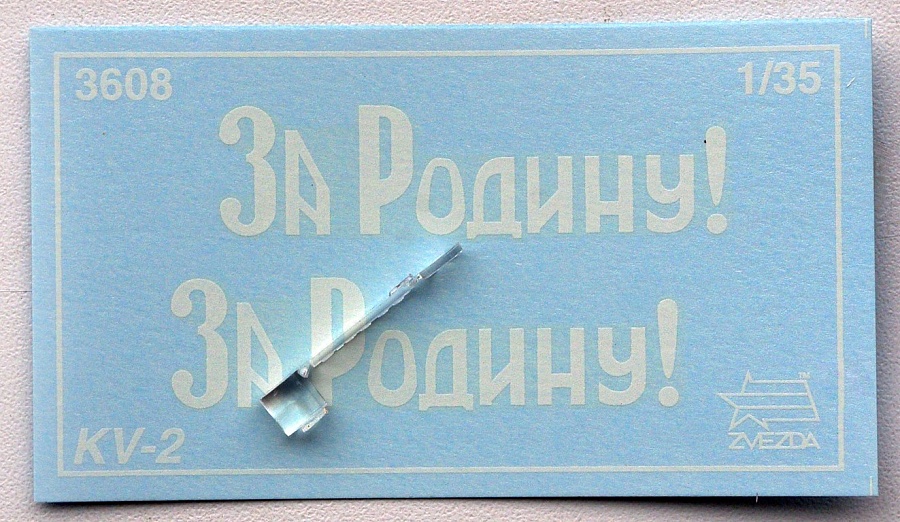 | Долгожданный КВ-2 от Звезды, вышел в конце октября 2011 года, наш ответ Китаю. Набор состоит из 9 литников зеленого цвета, стекла для фары, виниловых гусениц, деколей и инструкции. По сути в наборе новая только башня, остальное КВ-1 (выпушенный Звездой в 2007 году). Башня проработана лучше Трумпа, в ней даже присутствуют зачатки внутрянки. Набор стоит примерно 300-400 рублей. | |