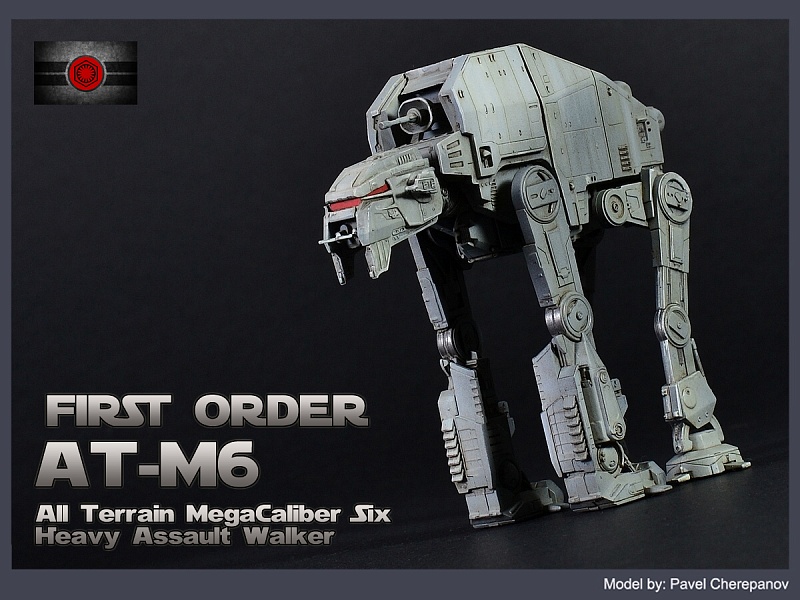 | Новая модель Павла Черепанова по вселенной "Звездных Войн", тяжелый осадный шагоход АТ-М6, который появляется в Эпизоде VIII: Последние джедаи, вышедшем в 2017 году. Модель продается! ИСТОРИЯ AT-M6, тяжёлый штурмовой шагоход Первого ордена (англ. First Order Heavy Assault Walker), использовавшийся в период войны c Сопротивлением. Будучи больше предшественника, шагохода АТ-АТ Галактической Империи, AT-M6 был крупнейшим шагоходом в арсенале Первого ордена и нёс в качестве бортового вооружения не менее четырёх бластерных пушек а также спецорудие, установленное в верхней части корпуса и известное как «Мегакалибр-6», в честь которого и получил своё название. В Эпизоде VIII: Последние джедаи одиннадцать шагоходов данной модели, вместе с прочей техникой и авиацией, были высажены в соляной пустыне на планете Крэйт и атаковали местную базу Сопротивления. В ходе битвы АТ-М6, при поддержке авиации, уничтожили все единицы лыжных спидеров противника, выступивших против них, а также безуспешно атаковали Люка Скайуокера, в то время как командиры не догадывались, что перед ними лишь Проекция Силы. Самопожертвование Люка дало повстанцам время, необходимое для эвакуации с планеты. После битвы, предположительно, все наземные силы, включая АТ-М6, вернулись на корабли. Высота этой машины - 36 метров, то есть как 12-этажный дом! СБОРКА и ОКРАСКА Это модель из "карманной" серии фирмы Bandai, всего 7 см в высоту, и состоит из буквально 15 деталей, собирается без клея. Ноги, к сожалению, не двигаются, и ему нельзя придать другую позу. Окраска и везеринг делались по всем моим канонам, со смывкой, маслами, высветлениями, потертостями до металла, копотью. МАТЕРИАЛЫ Bandai Hobby – Star Wars Vehicle Model 012 AT-M6 |