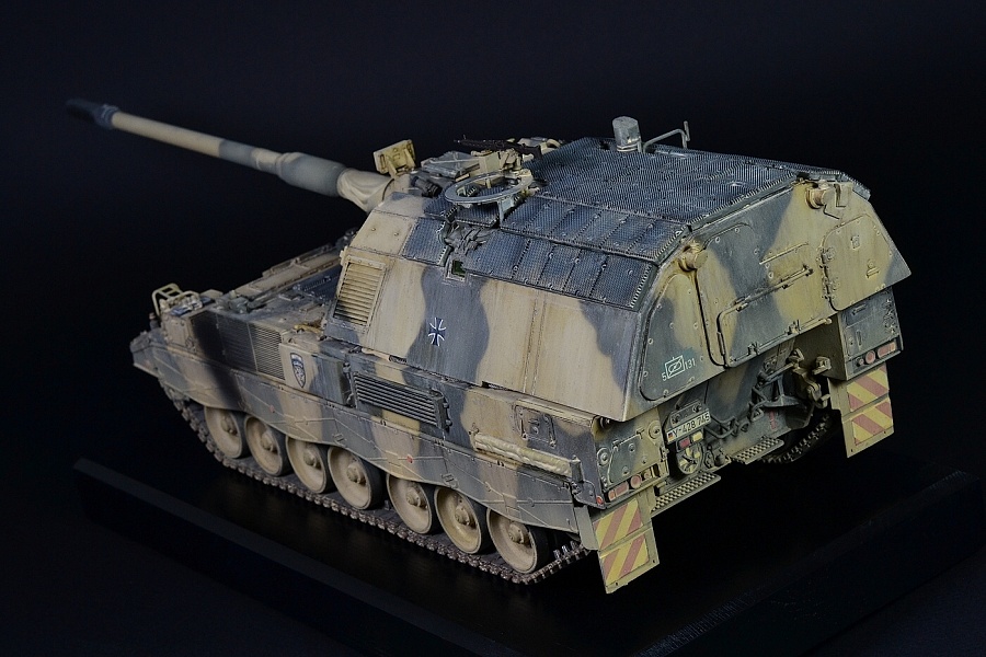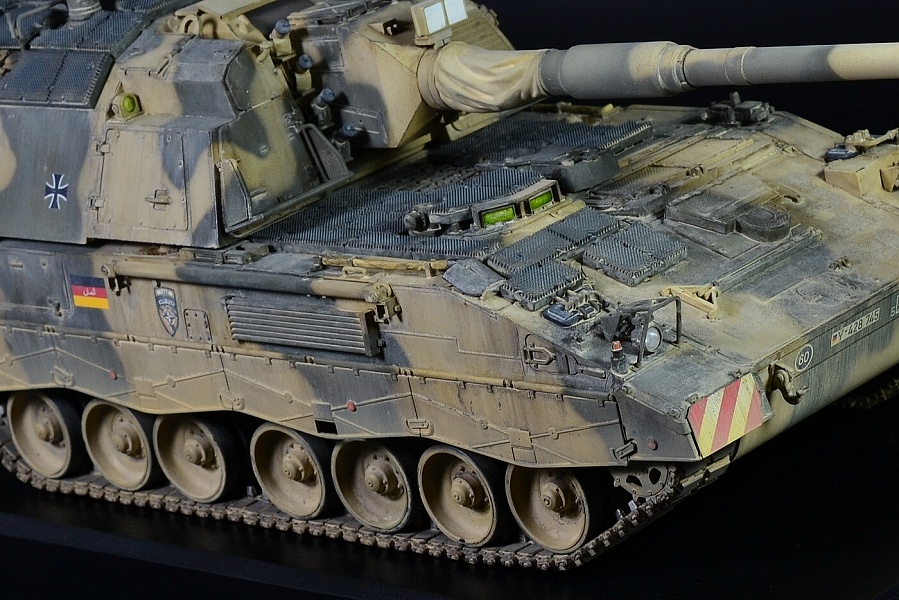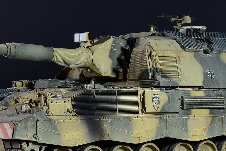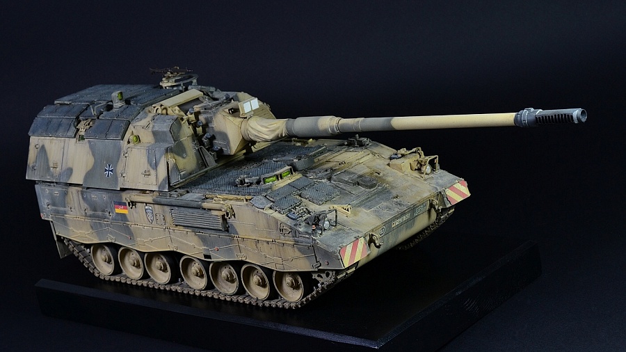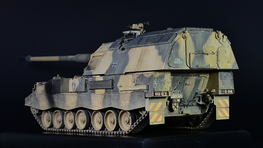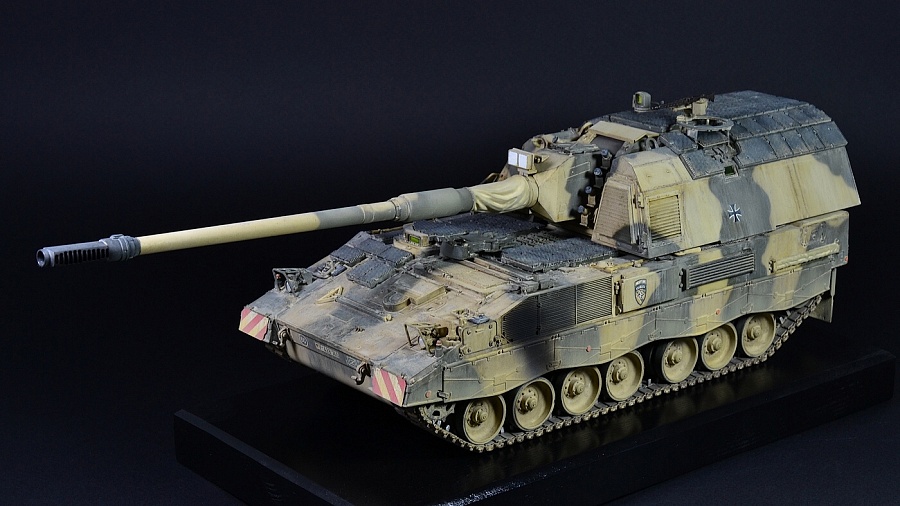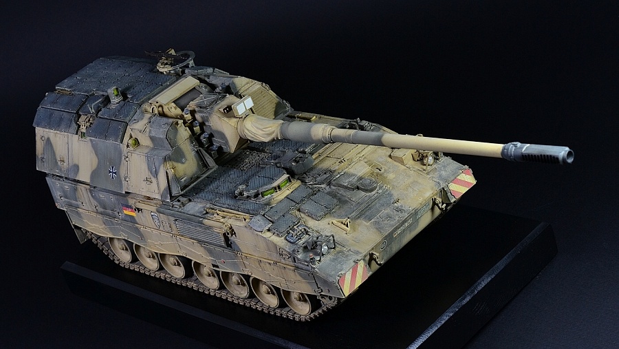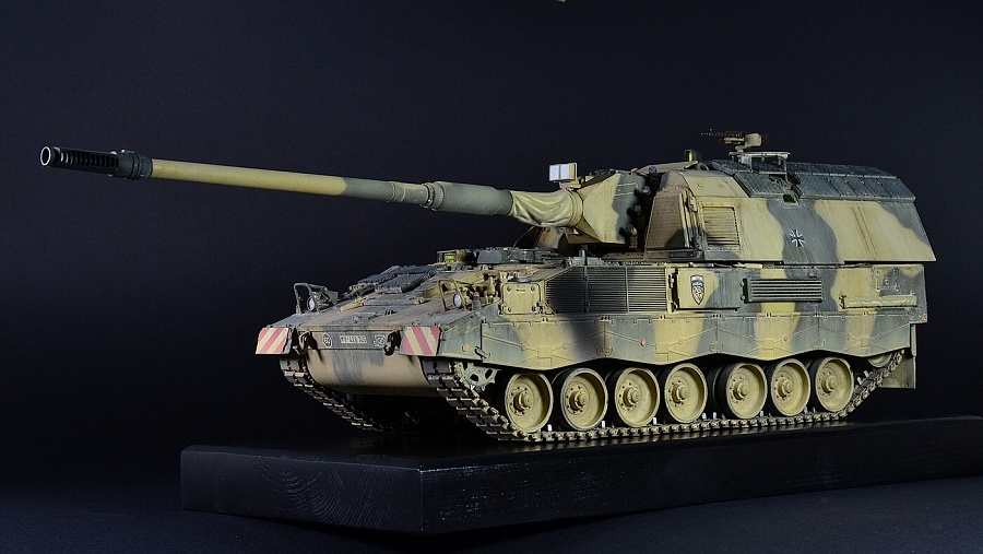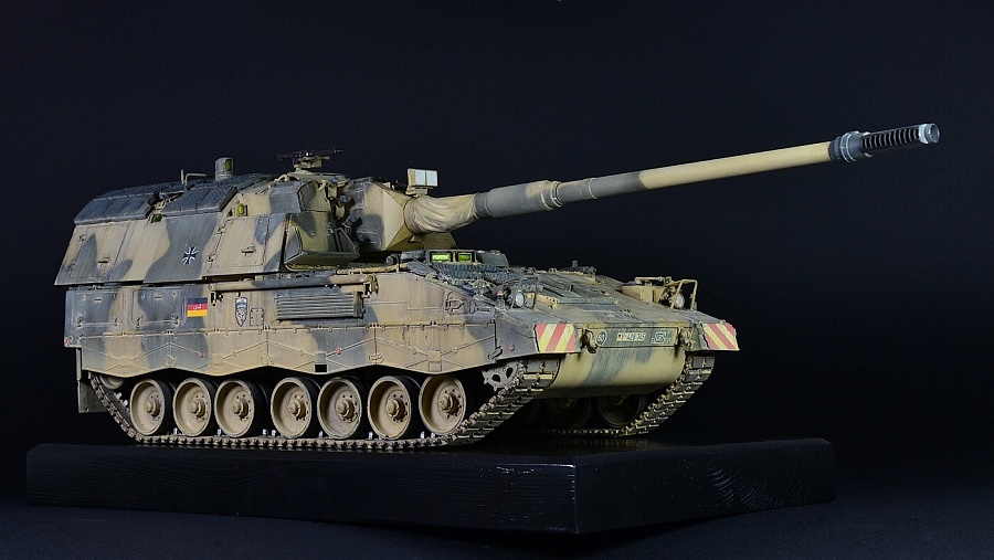 | Новая совместная работа Павла Черепанова и Михаила Кулакова, построена на продажу, модель 1:35, самоходная гаубица PzH 2000 Бундесвера, Афганистан, 2010 год. СБОРКА: Павел Черепанов ОКРАСКА И ВЕЗЕРИНГ: Михаил Кулаков МАТЕРИАЛЫ: MENG TS-019 Panzerhaubitze 2000 w/Add-On Armor ИСТОРИЯ 2 апреля 2010 года в Афганистане в крупном бою с талибами были убиты трое немецких военнослужащих и еще восемь получили ранения. Кроме того, боевикам удалось уничтожить бронеавтомобиль Dingo. После этого инцидента министр обороны впервые публично признал, что в Афганистане, "говоря простым языком, идет война". Чем они там до этого занимались 9 лет, не совсем понятно... Но после этого разгорелась дискуссия об усилении немецкого контингента тяжелой броней. Было отправлено несколько БМП Marder. Горячие головы предложили было послать туда танки Leopard 2, но им возразили, что на севере Афганистана просто нет таких мостов, которые выдержат их вес. Тогда на базу Бундесвера в провинции Кундуз решили отправить три САУ Pzh 2000. Мосты их также не выдержат, но идея была в том, что они будут размещены на базе стационарно и оттуда будут прикрывать огнем район радиусом 40 км. Аналогичный опыт уже был у голландской армии, которая также использовала эти САУ в Афганистане. Немецкий контингент получил три САУ, в июне 2010 года, и активно их использовал, например 10 июля 2010 года для прикрытия эвакуации поврежденной машины. В ноябре 2010 г, в операции "Хальмазаг", САУ сыграли ключевую роль, во время захвата немецкими парашютистами удерживаемых талибами кишлаков Isa Khel и Quatliam. | |
