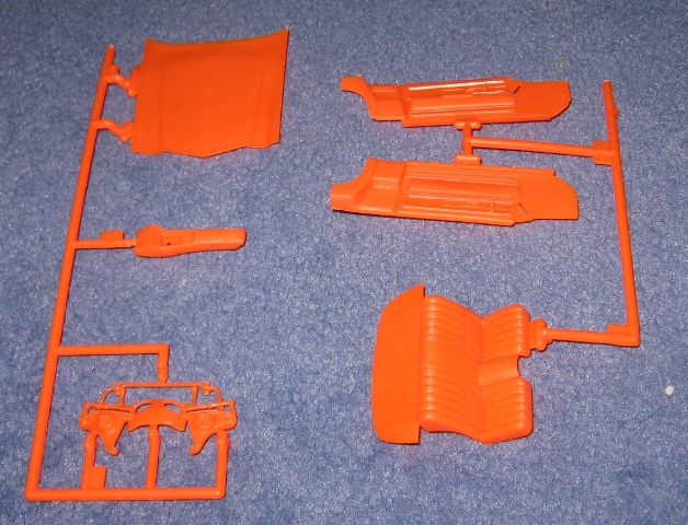 | Приветствую всех!!! Продолжаю делать обзоры американских авто. Вот дождался еще парочку моделей. Сама модель разработана в 80х, переиздается с 2009 года, деталировка средняя, понравился движок, приличное остекление. В коробке 7 ораньжевых литника, 1 хромированный с 4я деталями, остекление, задние фары, кузов и часть днища, 4 покрышки, декаль, инструкция. |