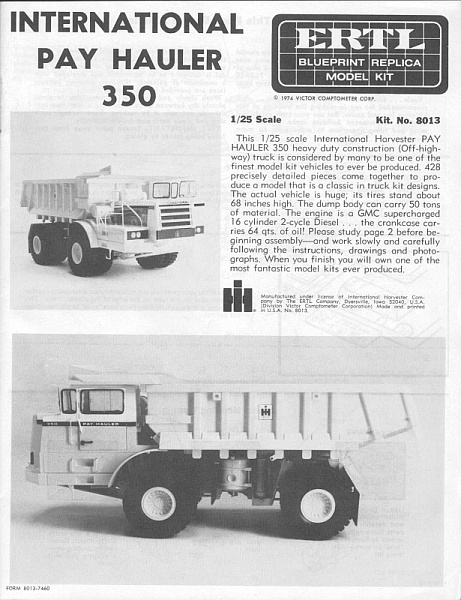 | Приветствую форумчан! Наконец-то дождался))) и выкладываю обзор. На этот раз модель карьерного самосвала, проработан неплохо,собирается из 428 деталей, передний мост поворотный, кузов подымается, дверь открывается. В коробке 9 серых литников, остекление,шины, декаль, инструкция (Всю не фоткал, это книжка в 25 страниц) |