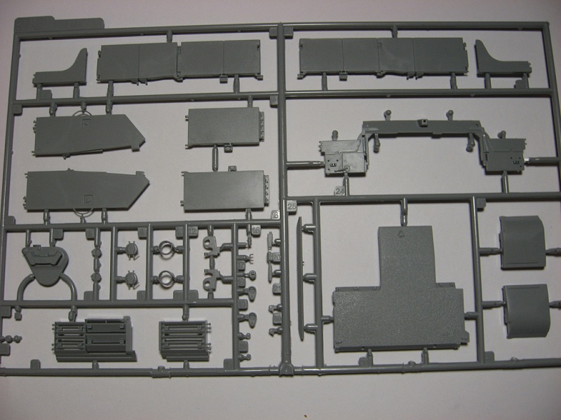 | Вот, решил выложить обзор довольно редкой модели. Коробка из плотного картона, с фотогрфией реального прототипа и различной информацией о модели со всех сторон. Всего в коробке 8 литников, пакетик с наборными траками, а также картонка, на которой красуется травление, цепочка, металлический тросик, декали и приборы наблюдения. Фототравление фирмы вояжер приобреталось отдельно. Пластик довольно хорошего качества, каких либо утяжин или облоя замечено не было. На корпусе присутствует имитация антислипа. Минный трал выполнен очень копийно. На него выделено сразу три литника. Все литники изначально упакованы в пакетики. Инструкция довольно большая по размерам и максимально информативна. Предлагается четыре варианта окраски. Первое впечатление от модели исключительно положительное. В итоге должна получится футуристичная машина с очень высоким уровнем деталировки. |