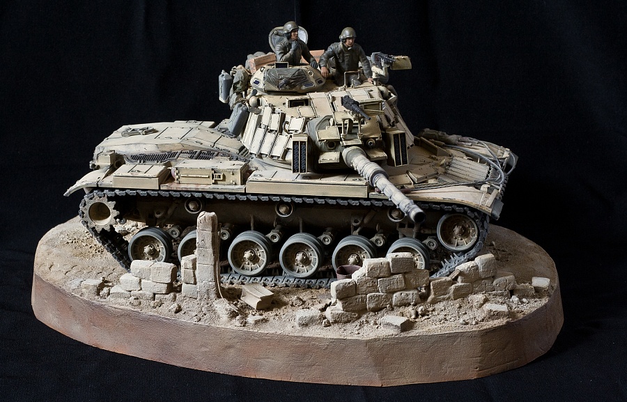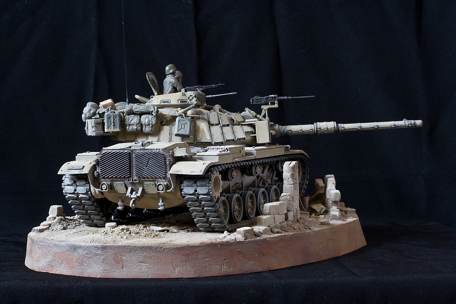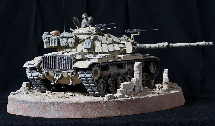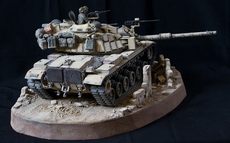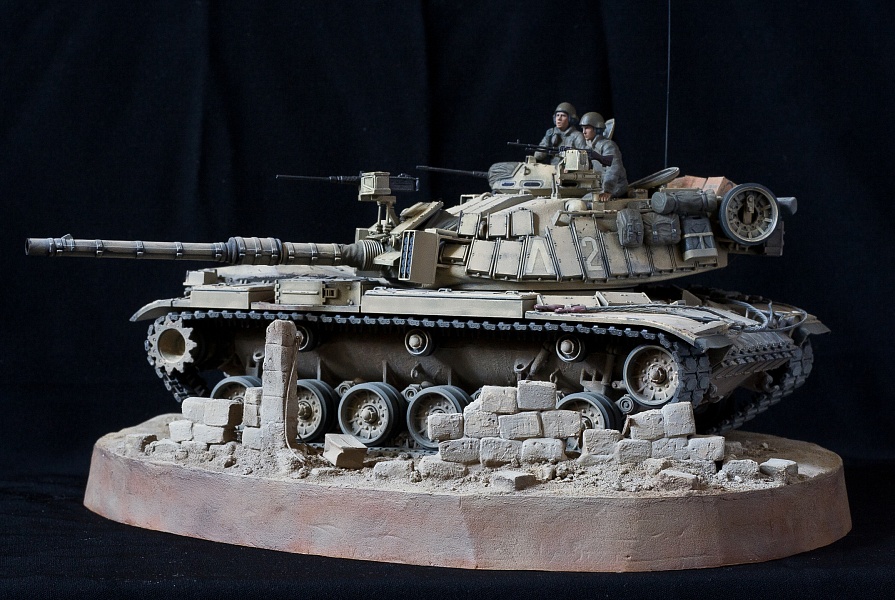 | После вынужденного долгого творческого перерыва решил вдохнуть жизнь в несколько уже стоящих на полке моделей. В частности, попробовал сделать первую виньетку. За основу взял ранее сделанный M60 Blazer армии Израиля (посмотреть изначальный вид модели можно здесь https://karopka.ru/community/user/7687/?MODEL=244435 )Основа виньетки из пенополистирола. Каменная кладка - пенополистирол + шпаклевка + ПВА, грунт - подручные материалы из местной песочницы). Для меня это первый опыт делать виньетку, да и фотокамеру в руки не брал несколько лет, так что не судите строго. |