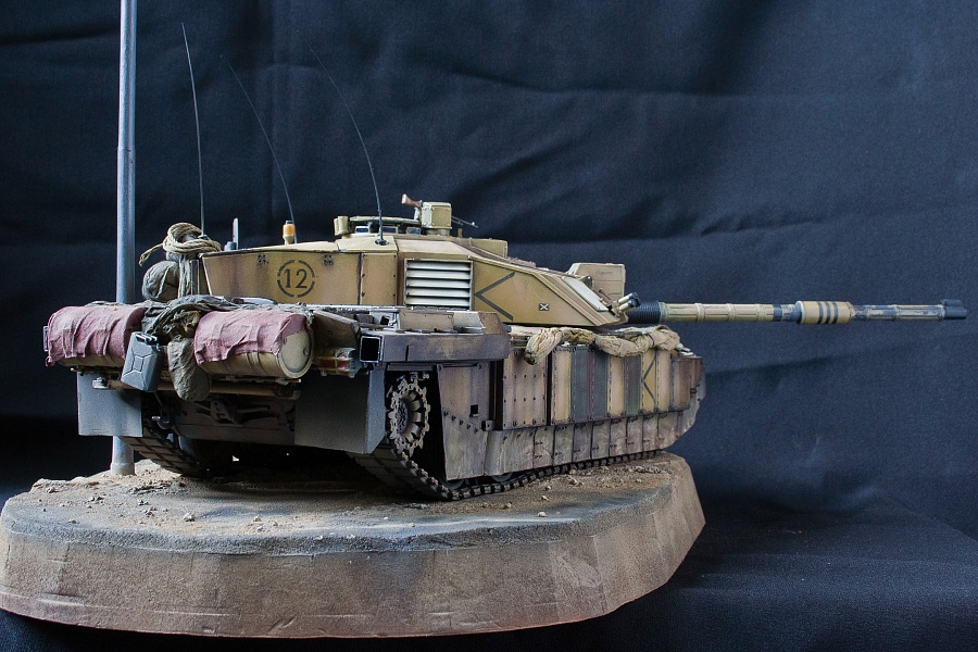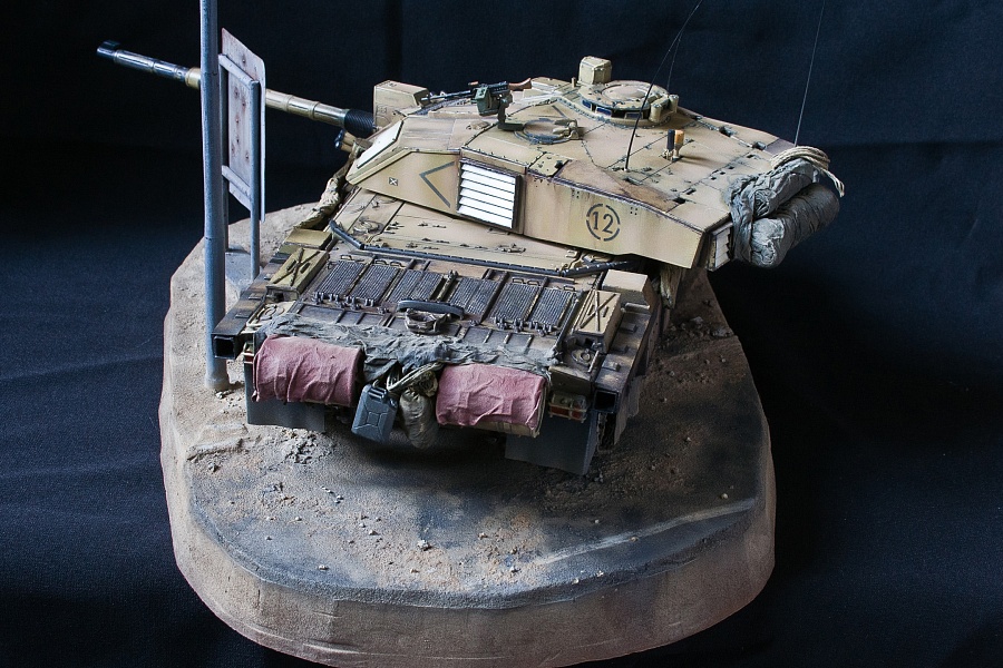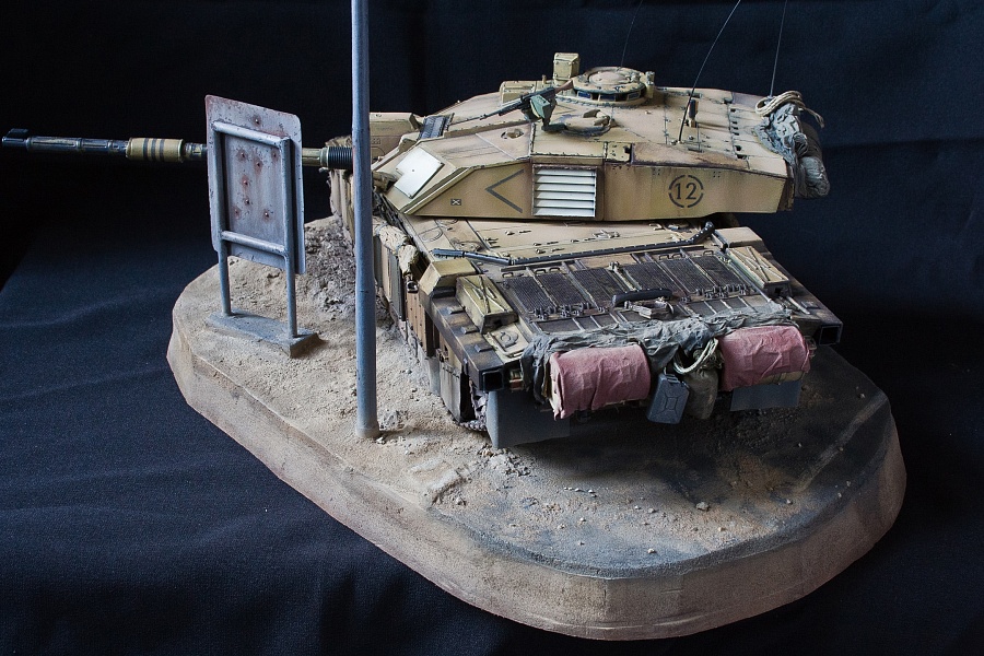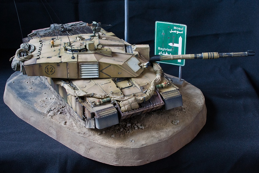 | Приветствую!Предлагаю вашему вниманию еще одну виньетку, а заодно ремастеринг одной из моделей моей коллекции. Стоит отметить, что сия модель переживает третий "рефреш") Сюжет виньетки прост: старый бравый Challendger 2 бороздит просторы Ирака по дороге между Мосулом и Багдадом. Основание - пенополистирол, асфальтовое покрытие - смесь соды, песка и пва в пропорции 1:1, нанесенное впоследствии шпателем. Грунт и обочина - та же смесь соды, песка и пва, но в более жидкой пропорции + подручные природные материалы. Фонарный столб и дорожный указатель полностью выполнены из бумаги (хотя первоначально была попытка использовать листовой пластик и литники). Но, как оказалось, с бумагой работать было проще. Тем более что распечатку самого дорожного указателя проще сделать на принтере на бумаге, чем на пластике) Сразу опережая комментарии самых бдительных касательно того, что сей юнит с бортовым номером 12 в реальности на фото выглядит иначе - да, я знаю. И выглядит он там весьма скучно и безжизненно, как по мне. Я позволил себе вольность в плане того, насколько "потасканного" вида он мог быть. P.S. Извиняюсь за мятую ткань в качестве "задника" на фото, поздно заметил... исправлюсь) |