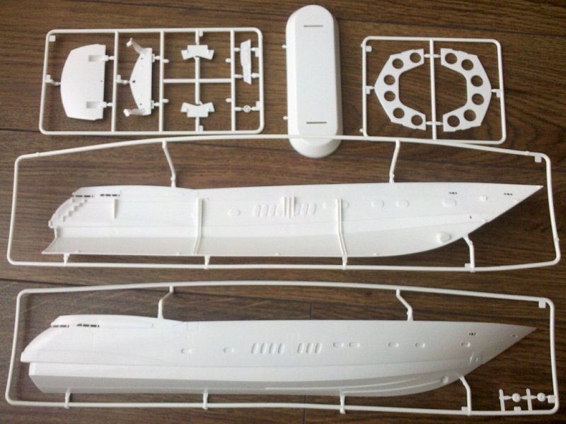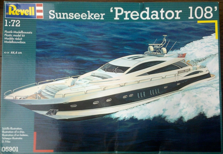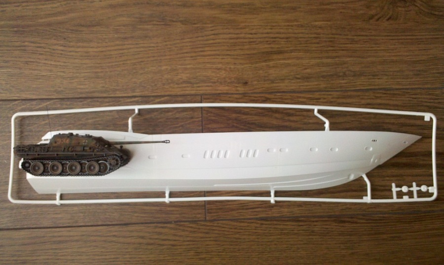 | Модель Ревелл в масштабе 1/72. Давно на него поглядывал, а тут англичане скидку устроили, купил за 18 Евро. Опять же некоторые навыки по применению масок получил на предыдущей модели. Так что морально готов, правда когда руки дойдут не знаю. Катер с некоторой внутрянкой, главный салон и пульт управления присутствуют. Пластик по первым впечатлениям очень качественный, облоя не заметил. Удивила длина катера — 44.5см, не ожидал, для сравнения сфотографировал с ЯгдПантерой в 72ом масштабе. Когда начну собирать обзор дополню. | |