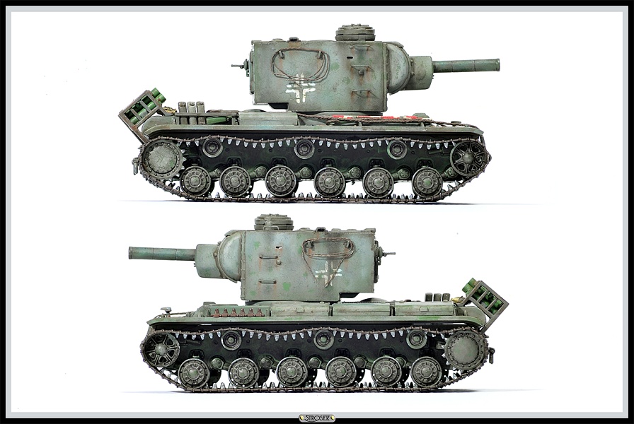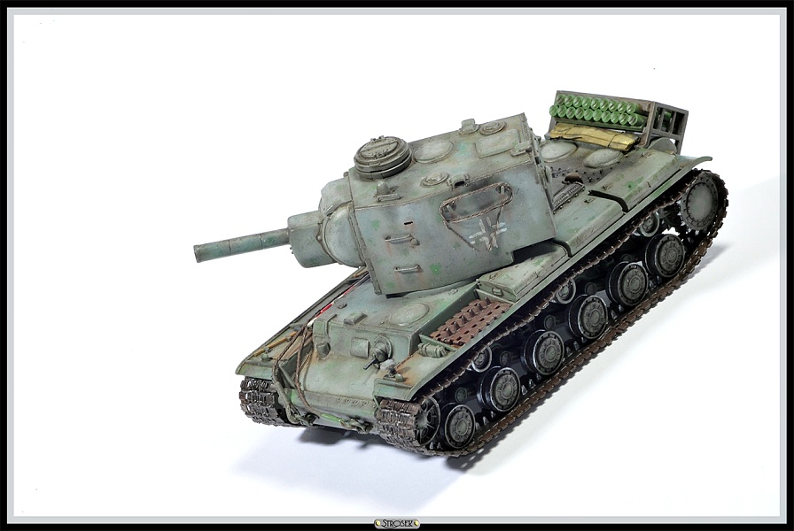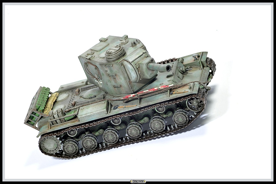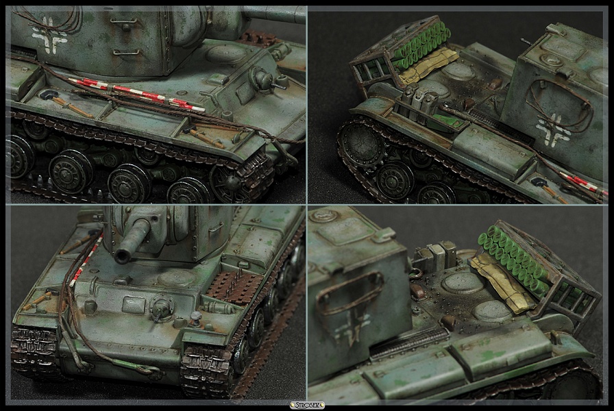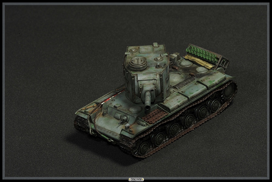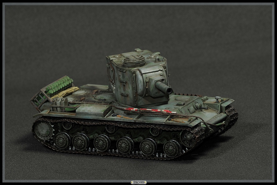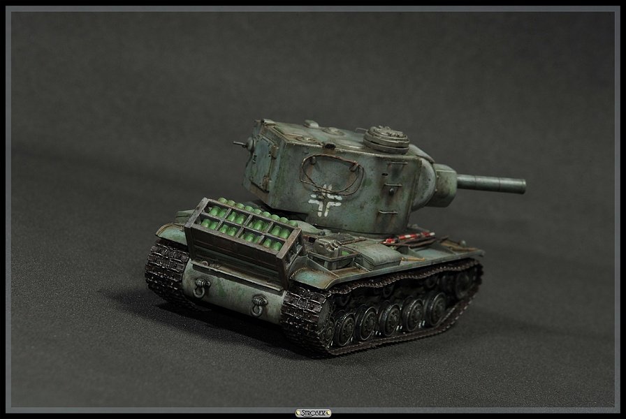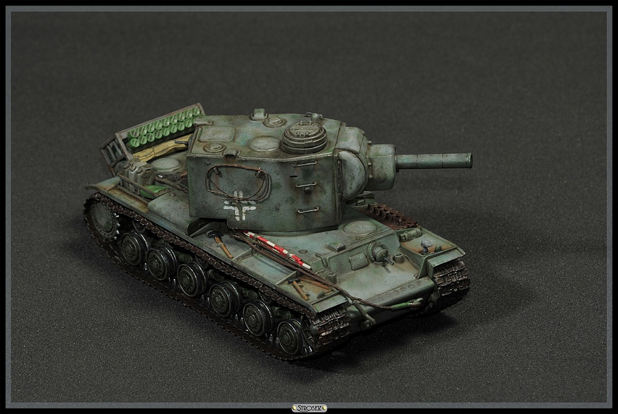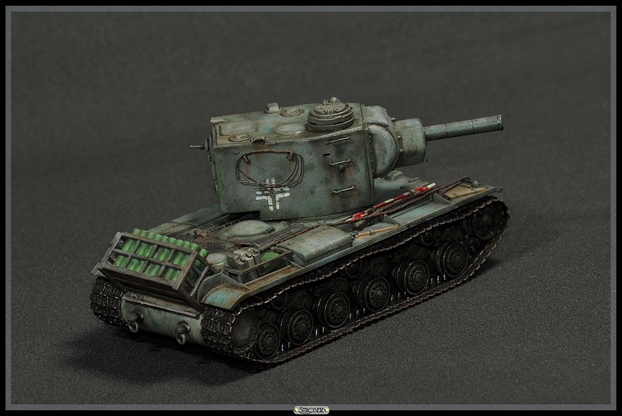 | Всем привет! Продолжаю осваивать новую технику покраски. И опять наступаю на грабли и набиваю шишки. В этот раз идея была сделать КВ-2 на службе Вермахта, чтобы из под серого цвета проглядывал зеленый. Решил применить технологию с лаком для волос, но что то пошло совсем не так. Во-первых не смог добиться мелкого шелушения, отходили сразу большие куски, а во-вторых при нанесении лака весь серый цвет пошел трещинами. Еще и с базовым зеленым цветом ошибся, нужно было что-то более теплое и светлое использовать. Результат на фото, хвастаться особо нечем... От себя добавил поручни, изобразил провис гусениц, скатку, тросы. Сейчас купил раствор Vallejo для обдирки, надеюсь результат будет более предсказуемый. Приятного просмотра! |