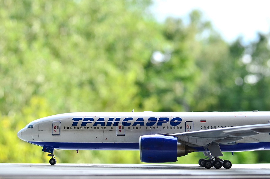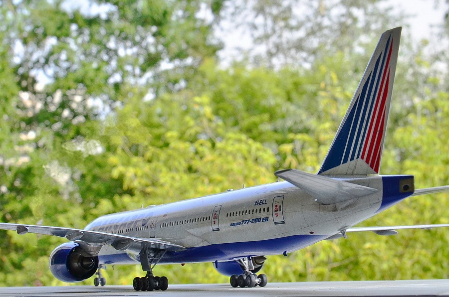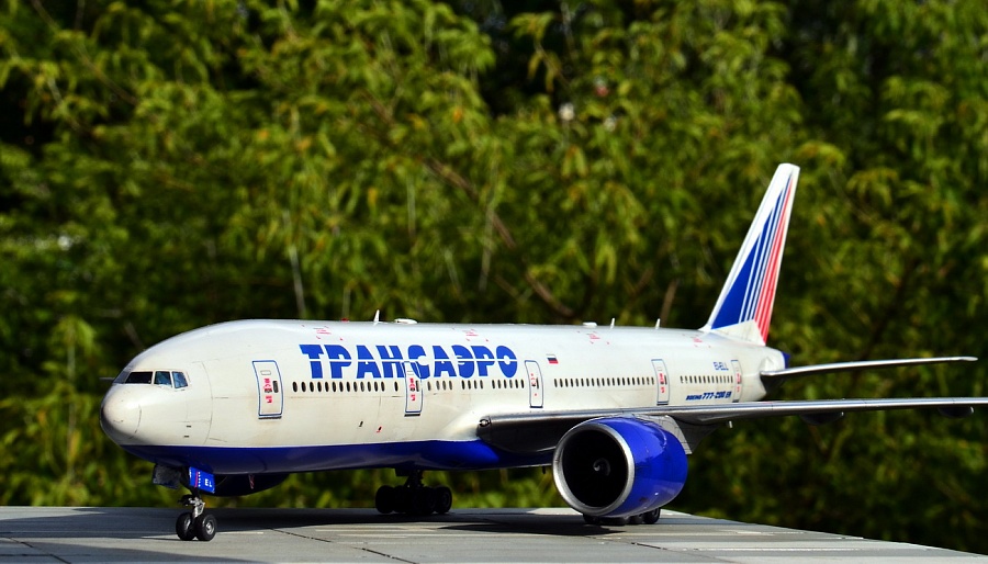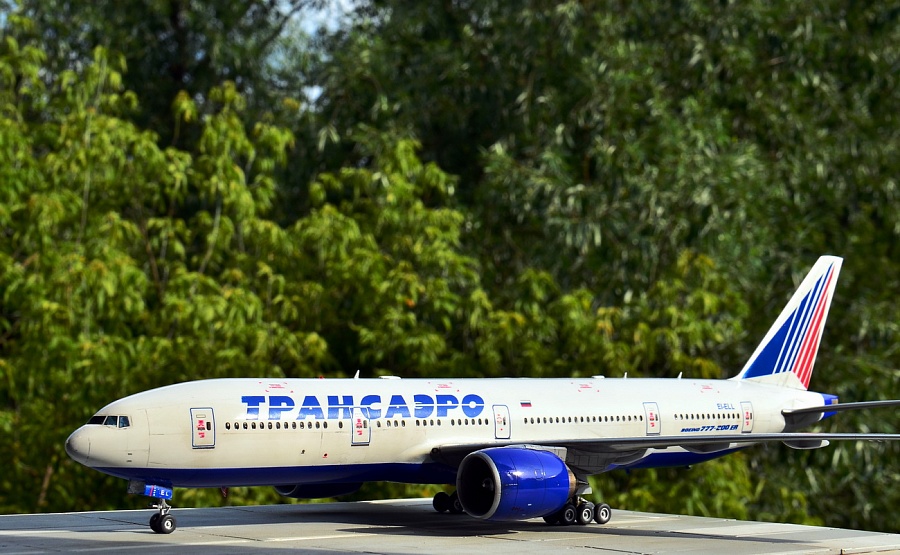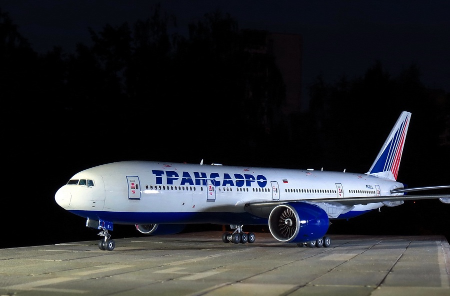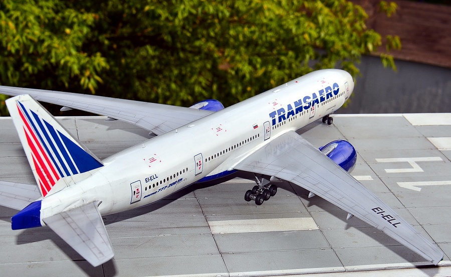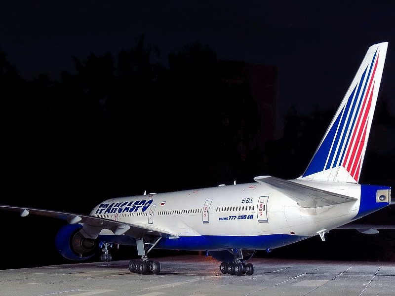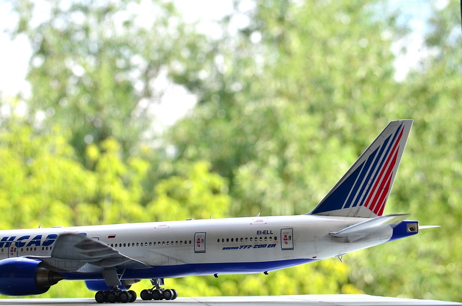 | Точнее, это Boeing 777-2Q8ER, которого у Трансаэро никогда не было, а есть у Nordwind почти с такими же движками GE90-94B, но теоретически он мог быть и у ТСО. Но, как оказалось, в наборе движки GE90-115B, которых в России вообще никто не юзал на "двухсотках", хотя они и были в других странах. А лопатки вентилятора слишком сильно отличаются... Покупать смоляные правильные движки почти за 3тыс.р не было желания, как и внедрять от набора ВЭ этот невнятный кусок пластика. Т.е это просто фантазия на тему ливреи и упражнения в перепиле. Делать второй 773 не было никакого желания, но второй набор тоже достался в подарок и я решил его немного "укоротить", благо различий в размерах не так уж много, а в геометрии основной части крыла и вовсе нет. Посчитал по чертежам ненужные места в исходнике, закрепил на размеченной доске половинки фюзеляжа, да и отрезал в нужных местах согласно пропорциям. Немного с первого раза перепутал размеры и вклеил часть отпиленного обратно. Подрезал крылья, убрав законцовки. Совмещение разрезанных частей фюзеляжа сделал на вклеенных изнутри отпиленных частях - прекрасная направляющая, исключающая увод от прямой благодаря почти трём сантиметрам нужного профиля. Вторая засада в этом перепиле - четвёртый салон в хвосте - он немного укоротился и пришлось перенести третью дверь, чтобы оставить прозрачным салонное остекление. Можно было перенести и третий салон декальными иллюминаторами, но декаль от PAS в этом варианте страдает несовпадением размеров проёмов окон и я оставил как есть, зашпаклевав по паре с каждой стороны в четвёртом салоне. В остальном, всё стандартно. Белый и серый - автобаллоны Mobihell, синий - Revell 51, лак АКАН глянец, тонировка - тени Шанель. Змейка на коке вентилятора - от руки кистью (опять не понимаю чёрной пасовской декальной змейки, потому что даже на белый кок она не наносится в нужном виде ), на движках пигменты АКАН, которые здорово "поплыли" под лаком(((( Серебро на кромках плоскостей - АКАН "Яркий алюминий" , на стойках тамиевское серебро с добавкой чёрного. Чёрный на колёсах - Revell 9 Matt бел лака. Смывки на модели нет. Из косяков, которые есть на модели - размер шрифта логотипа Трансаэро не соответствует реальным размерам и очень жирный (на это указали сразу друзья из ТСО). Как всегда, красный цвет технички без белой подложки становится чёрным на синей базе, а правильной яркой технички на движки (хотя бы) от других моделей у меня больше нет. Далее, перепутаны местами декали створок передней стойки, которые представляют собой аппликацию из ревелловского белого алфавитного шрифта, нанесённого на частично задутую синим пименовскую декаль - если считать от носа, то сначала должен быть быть код, а потом красная полоса и ETOPS. Но могло быть и так, я видел варианты. А вот когда Пименов научится печатать белый цвет в массе - загадка... Выгнуть крылья и стабилизатор в нормальную прямую так и не получилось, только на крыльях немного убрал провисание, а дальше уже распускался клей и пластик. Код регистрации EI-ELL придуман мною и ни с кем не пересекается. Больше мне сказать про этот эксперимент нечего.... И конечно, эта модель является просто демо-версией, ни о какой галереи не может быть и речи. Это просто баловство для себя, которое на "Бред" не может претендовать, а в "Песок" жалко. Она уйдёт в личные. |