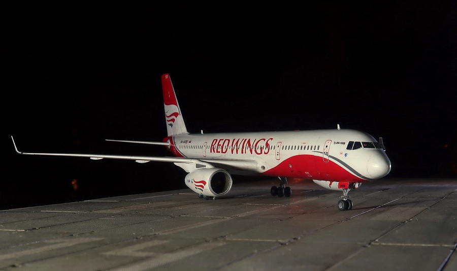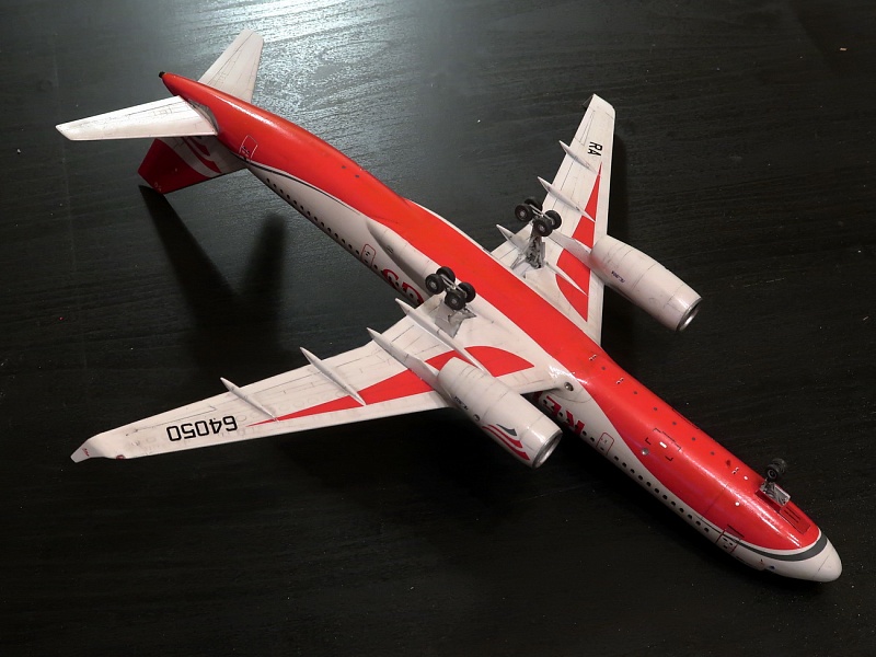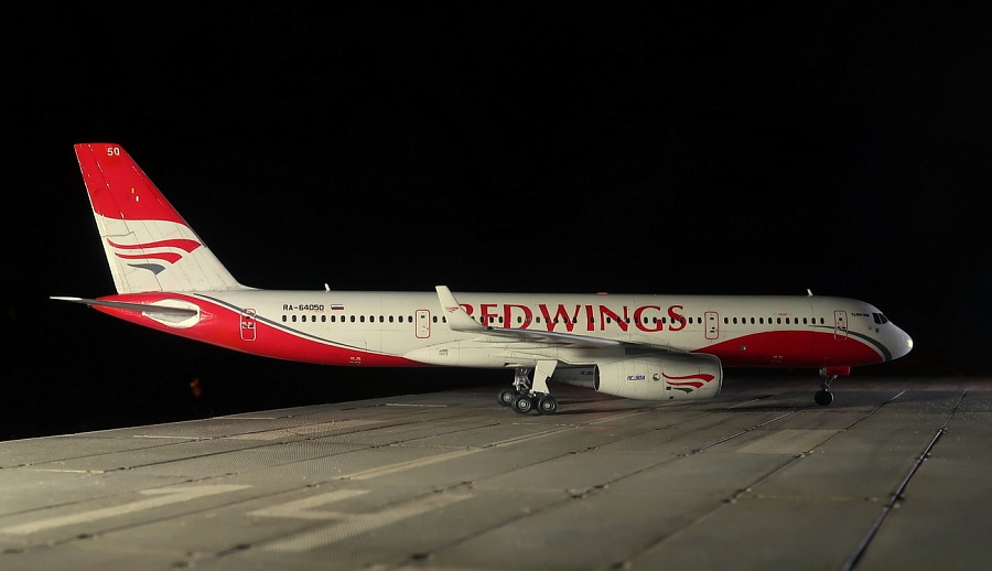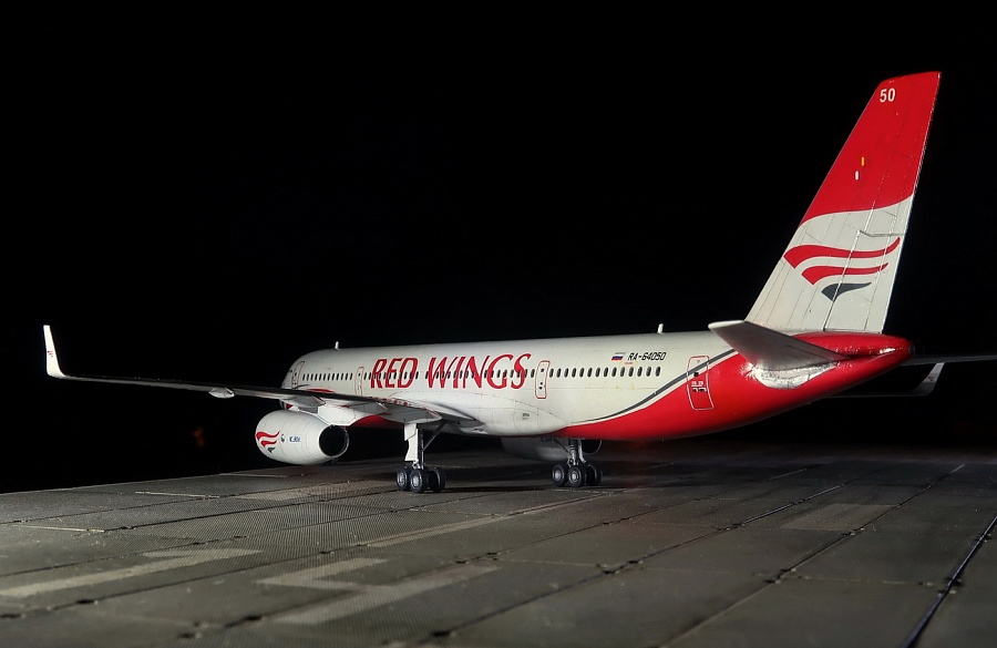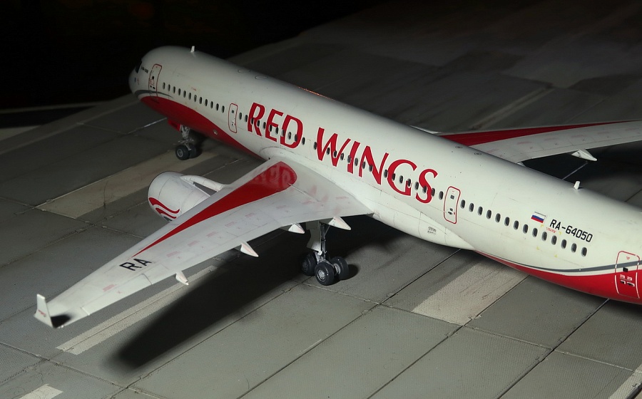 | Ждал. Дождался. Но он не удался))) Конечно, я поначалу обрадовался декали, которая, вроде как избавляет от накраски этого краснокрылого безумия, но потом, в процессе её нанесения, десять раз пожалел, что повёлся на лютую засаду от производителя. Не, конечно, имея усидчивость и терпение школьника, это сделать можно. Но я в этом не уверен. Во-первых, декаль всего этого красного пуза дико тянется и надо было её резать как трансаэровского тигра частей этак на десять, а потом подгонять. Но это не самый лучший вариант, как оказалось, потому что любой перехлёст на стыке (а он будет 100%) даёт очень сильное изменение цвета в этом месте. С носом проблем практически не было, а вот хвооост... Подогнать одновременно проёмы стаба и расстояние до хвостовых окон практически нереально - изгиб уползает немного ниже и попасть в нужное место задними дверями становится невозможно - они в этих жутких трёх слоях декалей просто ниже на 4мм расшивки. Да, косяк и я его заметил только на финише. А на носу после лака х22 дека ещё и стала расползаться кракелюрами, что было очень неприятным сюрпризом. Короче, после декалирования, красный гамбургер был очень забавный, но акановский Signal Red прекрасно совпадает со звездовским неправильным цветом декали и локальные задувы выправили ситуацию. Повёлся и на фотодекаль лобовухи от Пименова. Она хороша и красива, но немного неверна по геометрии проёмов остекления, т.к. скорее всего делалась не под Звезду. Оставил как есть, но если вдруг буду делать Тушку ещё раз, то конечно надо оставлять остекление лобовухи прозрачным, благо это самый простой фонарь. Полосками белой декали можно вывести без проблем весь фонарь после одной обтягивающей маски. Заморачиваться на маски переплёта наверное не надо. Что касается технички на крыльях: смотрите на фото оригиналов и не наносите этот цирк с крестами и буквами! Она есть на двух бортах и оччень слабо видна! На 050 её нет! Я нанёс, ужаснулся и загасил фильтром, иначе это просто трэш. В основное бело-серый цвет я не попал, хотя и подбирал по аналогам. На тесте Мобихелл давал изумительный серый оттенок, а после нанесения на модель, бессовестно проглотил белую подложку шрифта и перестал быть "светло-пепельным", перейдя в состояние "просто тусклого белого". Неожиданно и неисправимо. И на правой стойке ещё и тележка гульнула вверх... Правая верхняя"сопля" на крыле накрашена по трафарету и маскам, потому что я очень удачно снял оригинальную декаль тамиевским неотбитым тейпом)) Таким же незамысловатым образом регистрация тоже была нанесена заново из шрифтового набора Бегемота на крылья и киль. Короче, я чертовски доволен тем, что я его всё же сделал и жутко недоволен результатом. А вообще, моделька в сборке очень приятная.Финишный лак - АКАН-аква. |