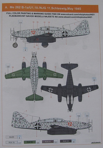 | Еще один чех. На этот раз - это ЛВД от Эдуарда. К тому же, дабл кит. В коробке находится два пакетика с литниками (в каждом по два литника) - так как моделей две. Один литник с двумя фонарями. Одна плата фототравления, а также декаль и инструкция. Модель имеет очень аккуратную внутреннюю расшивку, среднюю деталировку - кокпит очень беден, ниши тоже. Геометрия - по длине не набирает 50 см (4мм с масштабе - думаю, простительно), размах крыла совпадает с прототипом. В качестве подвески есть два 300 литровых ПТБ. На литниках можно найти еще две бомбы - результат унификации прессформы с одноместным Ме-262. Антены РЛС даны в виде фототравления, также, как и подкосы основных стоек шасси и кольцевая антенна FuG 1ZY. Декаль дана на два перехватчика (Me-262 B-1a/U1) и два УТС ((Me-262 B-1a). Присутствует свастика! Альтернатив этому набору нет. Эдуард также выпускает одноместный ( A-1a, A-2a, A-1s/jabo) вариант. Есть одноместный и у Трампа. У него богатая деталировка (отличный кокпит, возможность открыть отсек вооружения), но более глубокая расшивка и огромная клепка на пузе. Также в наборе Трампа есть Kettenkraftrad и ракеты R4M. |