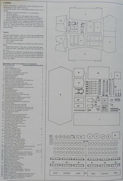 | Древний и редкий набор отитальянского производителя TAURO model. Масштаб 1/35, набор содержит 416 деталей, пластик серого цвета, литьё хорошего качества, фигурка одного танкиста (из 18), фигурка качества итала, старой тамии.Инструкция в стиле итало-тестер.Траки наборные из резины средней твердости, имеют отверстия для пальцев, инструкция предполагает рабочую ходовую и подвеску на металлических пружинах.Деколь на два варианта A7V , Hagen и Wotan. С чертежами не сверял. Очень интересная модель, в пластике альтернативы нет. ТТХ Вес - 30тон Длина - 8 м Ширина - 3,05 м Высота - 3,4 м Броня лоб - 30 мм корма - 20 мм бок -16 мм верх -12 мм Скорость шоссе - 10 км/ч грунт - 5 км/ч Двигатель 2 х Daimler Benz , 100 л.с , бензин Вооружение 1 - но 57 мм орудие Sokol 6 пулемётов Максим 7,92 Боекомплект 180 выстрелов 36000 патронов Экипаж - 18 человек |