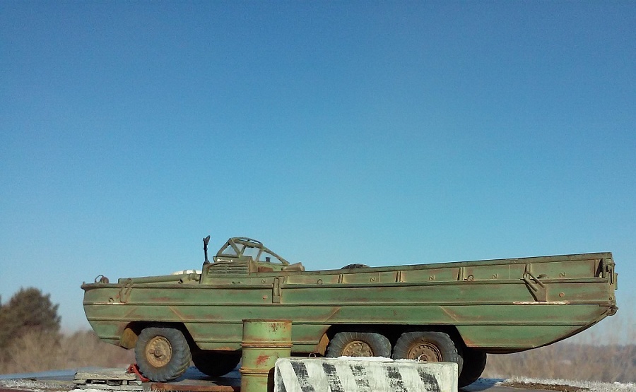 | Еще одна новинка от AVD Models- БАВ-485. Модель как и автобус из Смоляной серии, выполнена полностью из смолы. Сам кузов, подвеска , диски итд отлиты из смолы. Покрышки даны резиной, остекление прозрачная отштампованная пленка. Большой плавающий автомобиль-амфибия БАВ предназначался для перевозки и переправы через широкие водные преграды личного состава, колёсной техники, артиллерийских систем и материальных средств. Использовался при форсировании рек в первой и второй волне десанта, а также при высадке морского десанта с десантных кораблей. Считаю что это редчайшая модель, я лично не встречал таких тем более в 43 масштабе. Модель подробно детализирована, дано место водителя, подвеска, гребной винт итд. Детализация мне очень понравилась.Смола отличного качества, легко очищается от облоя и обрабатывается. Сама модель совсем не маленькая, для сравнения рядом я сфотографировал Зил 130 .Окрашена Мотип Хаки. Интереснейшая машина, собирать ее было интересно! Приятного просмотра! | |