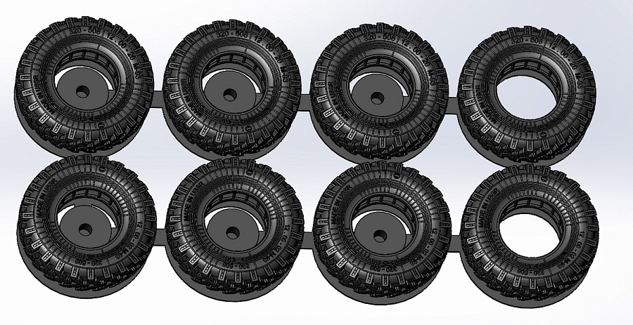 | Приветствую уважаемые коллеги. Вашему вниманию представляется конверсионный набор колес Омскшина М-93 на ЗИЛ-131, напечатанный на 3D принтере. Состоит из: 1. Шина; 2. Диск + на запаску; 3. Задняя часть обода; 4. Имитация тормозного барабана. Протектор прослеживается четко. Особенно понравился рисунок на боковой части шины, надпись читаема. Отлично смотрятся болты на дисках. Приобретением доволен, как и стоимостью. По остальным вопросам обращаться в личку Андрей Свинин. | |
