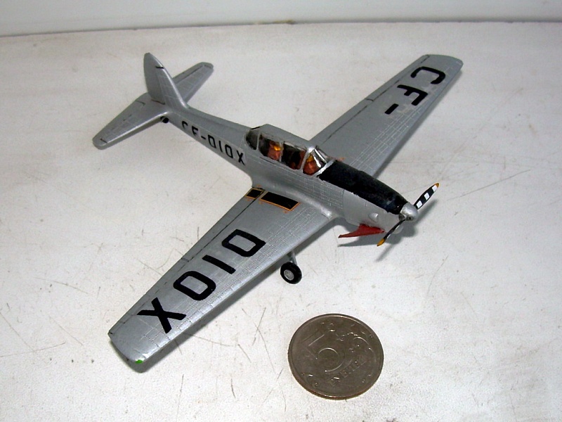 | Всем доброго времени суток. Решил показать очередную собранную модель - DHC-1 Chipmunk (Бурундук). Этот самолет был разработан на канадской фирме De Havilland of Canada на замену тренировочному биплану Tiger Moth.. О конструкторе, пожалуй, стоит рассказать подробнее. Всеволод Иванович Якимюк родился в 1902 году в семье православного священника из небольшого населенного пункта Козинье. Среднее, а затем и высшее образование получил в Вильно (сейчас Вильнюс). Работал там же школьным учителем. В 1927-1929 годах учился в Париже, откуда вернулся дипломированным авиационным инженером. Устроился работать на фирму PZL, в группу Зигмунда Пулавского, занимавшуюся проектированием истребителей. После гибели Пулавского в авиакатастрофе возглавил группу. Под руководством Якимюка были созданы истребители P-7, Р-11, Р-24, Р-50 Jastrzab, а также пассажирский самолет PZL-44 Wicher. После начала Второй Мировой войны эвакуировался вместе с техническим персоналом PZL в Румынию, а затем во Францию. Там стал работать в авиационном концерне SNCASE (Societe Nationale des Constructions Aeronautiques - Sud Est), участвовал в разработке истребителя SE-100 и бомбардировщика LeO-451. В мае 1940 года перешел в британскую фирму De Havilland и был назначен главным конструктором канадского филиала фирмы в Торонто. Занимался адаптацией к местным условиям строившихся на фирме лицензионных самолетов (Anson, Harvard, Tiger Moth, Mosquito). После войны под руководством Всеволода Якимюка разработаны самолеты DHC-1 Chipmunk, DHC-2 Beaver. В 1948 году конструктор переехал в Великобританию, где разработал палубный истребитель DH-112 Sea Venom. А в 1951 году перебрался в Париж, где опять стал работать в концерне SNCASE. Там разработал оригинальный истребитель SE-5000 Baroudeur. А еще консультировал проектирование пассажирского самолета SE-210 Caravelle. В созданном для постройки сверхзвукового лайнера Concorde консорциуме Aerospatiale/BAC занимал должность директора по вопросам торговли. Затем возглавлял представительство концерна Aerospatiale в Северной и Центральной Америке. В 1972 году ушел на пенсию, но продолжал быть консультантом Aerospatiale. Умер в 1991 году, в Париже. Но вернемся к DHC-1, который, кстати, стал первой самостоятельной разработкой DHC. Он совершил первый полет 22 мая 1946года. С двигателем Gipsy Major (145 л.с.) самолет показал хорошие данные и был запущен в большую серию (1947-1956 годы). Помимо Канады, строился серийно в Великобритании и Португалии. Общий тираж – 1283 экземпляра. Самолет поставлялся в вооруженные силы Бельгии, Великобритании, Дании, Египта, Замбии, Израиля, Ирака, Ирана, Испании, Канады, Кении, Ливана, Малайзии, Португалии, Сирии, Таиланда, Уругвая, Цейлона. После снятия с эксплуатации в военных летных училищах DHC-1 разлетелись буквально по всему свету, где широко использовались гражданскими летными школами (государственными и частными), аэроклубами, а также частными лицами. В настоящее время в летном состоянии находятся около 500 самолетов. Теперь о модели. Она разработана еще в 1970 году, проработка соответствующая. На Каропке имеется обзор ( http://karopka.ru/community/user/8162/?MODEL=337791 ). Собирал модель без каких-нибудь переделок и дополнений. Со сборкой больших проблем не возникло. Грунтовка и окраска – баллоны Bosny. C переплетом остекления возникли проблемы (как всегда). Финишное покрытие – баллон Citadel. Декаль самопальная. Ну, и, пожалуй, китография. Она совсем короткая. В 72-м масштабе модель от Airfix до сих пор не имеет альтернативы. В 48-м имее