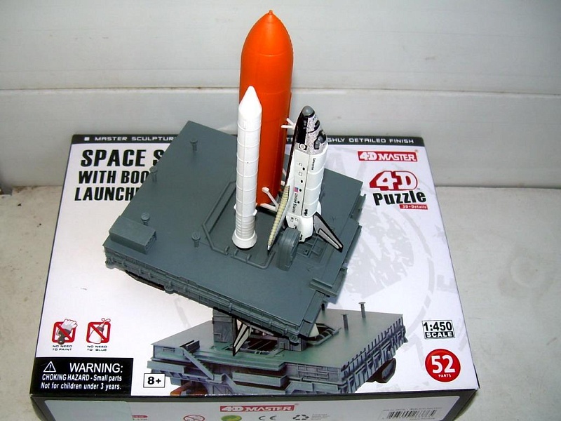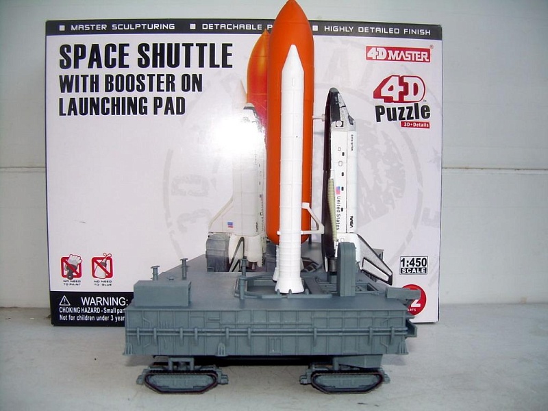 | Всем доброго времени суток. Решил показать очередной изи-кит от 4D Master - Space Shuttle в 1/450. Собственно, говорить особенно и не о чем. Собирается отлично, в собранном виде выглядит красиво. Собирал на клею. Пришлось перекрасить твердотопливные ускорители да гусеницы стартового стола или как он там называется. Больше ничего не переделывал. Не понял только, почему китайские игрушечных дел мастера выбрали на роль прототипа никогда не летавший в космос Enterprise? |