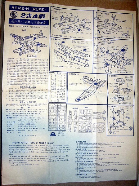 | Всем доброго вечера. Решил спустя долгий перерыв выложить новый обзор. Ибо мой старый фотик окончательно подох и я приобрел себе новый, даже целых два. Один я и решил испробовать, в роли "кошки" выступил очередной набор из суперзагашников - A6M2-N Rufe в масштабе 1/75 от японской фирмы LS. Модель выпущена, судя по надписи на отливке, в 1963 году, мой экземпляр, судя по дизайну коробки, изготовлен не позднее 1967 года. Кстати, при переиздании модели в 1968 году масштаб на упаковке уже указывался 72-й. В конце 80-х фирма LS обанкротилась и в 1995 году данную модель переиздала Arii. Что можно сказать об этом наборе? В принципе, он типичен для первой половины 60-х годов за единственным исключением: крой здесь внутренний - тонкий и аккуратный. Вот уж не знаю, как японцы его умудрились сделать при отсутствии электроэрозии? А все остальные признаки 60-х годов на месте: наружный клёп (впрочем, на реальном самолёте он таковой и был), упрощённый двигатель, отсутствие интерьера кабины (имеется только фигурка пилота), отклоняемые рулевые поверхности в игрушечном стиле, нарисованные прямо на пластике хиномару. Интересно сделан фонарь - такое ощущение, что его стоит делать только открытым. Декаль пожелтевшая и, что гораздо хуже, хиномару напечатаны со смещением. Как она будет реагировать на воду - не знаю. В заключение скажу, что с моделями данного гидроистребителя в 72-м масштабе дело обстоит негусто. Хороший и доступный набор имеется только один - от Хаси. Остальные наборы - еще из 60-х или 70-х годов (это, в частности, наборы от Frog, который потом делал Revell, от Jo-Han и от каких-то загадочных японских производителей Yodel и ZA). |