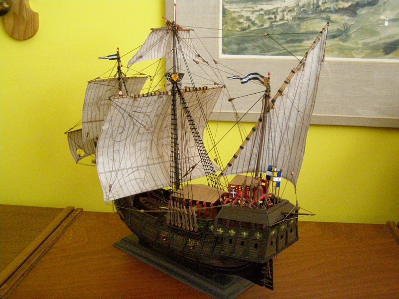 Кстати обратите внимание на паруса на собраной модели,это обычный тетрадный лист в линеечку вымоченый в кофес молоком и пропитанный ПВА.
