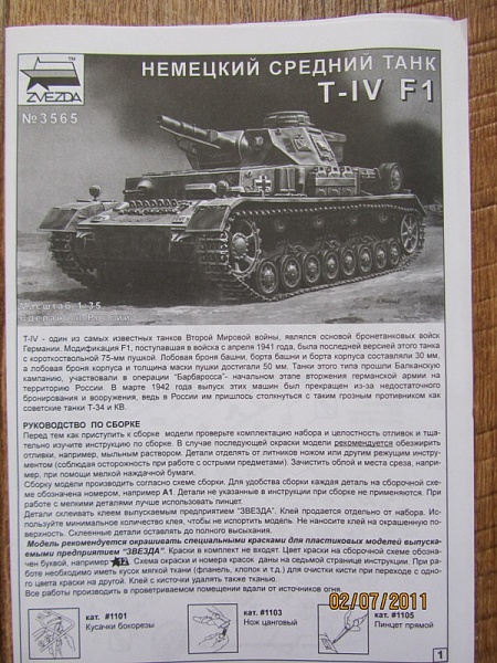 | Всем привет! Не успел я отправиться в очередной и долгожданный отпуск, как пришла посылка с двумя панцерами.... Итак, что мы имеем, а имеем мы две коробки от всеми любимых( или не любимых) производителей. Начнем с тамии:как всегда отличное качество, ни облоя ни утяжин, даже следов от толкателей не заметно. Ранняя версия четверки на польскую и французскую компании (плюс африкакорп). пластик серого цвета. Приятен в обработке. Гуси винил. Даны три члена экипажа. Модель видимо старая, т.к. расчитана под установку электодвигателя. Соответственно и отверстия в корпусе и резиновые втулки для колес. В коробке среднего размера лежат 4 литника+ ванна корпуса и виниловые гусеницы+ декаль и подробная инструкция, в стиле тамии, на двух буклетах. Первый на японском , второй на английском и немецком. Цена набора в инет магазине-570 рублей. Звезда:Пластик бежевого цвета. На коробке датаупаковки-май 2011. Три литника с деталями танка и фигурами. Два члена экипажа и панцергренадера. Гуси винил, но жестче, чем утамии. Облоя нет, но видны следы толкателей. Литники навалены просто так. Хотя могли бы и в отдельные пакеты положить. Судя по инструкции можно собрать только два варианта на 41-42 гг. Но на литниках присутствуют два ствола F1-F2 т.е. при сильном желании можно собрать и более поздние варианты. Цена набора-460 рублей Осмотр был поверхностным. В матчасть еще не лез. Первые впечатления-звезда проигрывает старой тамии.... При почти равной цене (100 рублей погоду не делают) я бы предпочел, всеже, японца. Но, как говорится, на вкус и цвет... С уважением! |