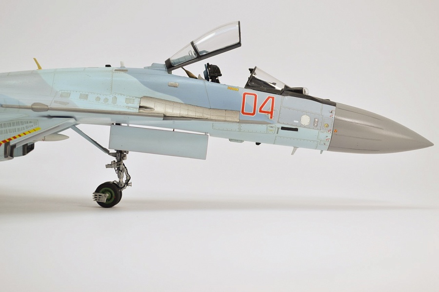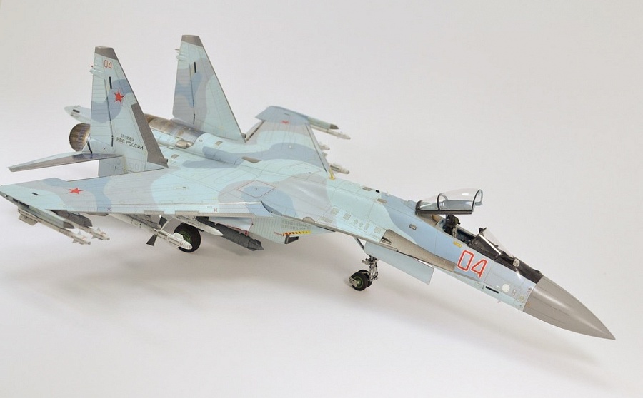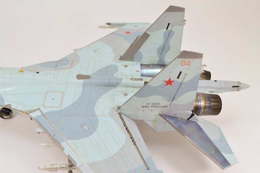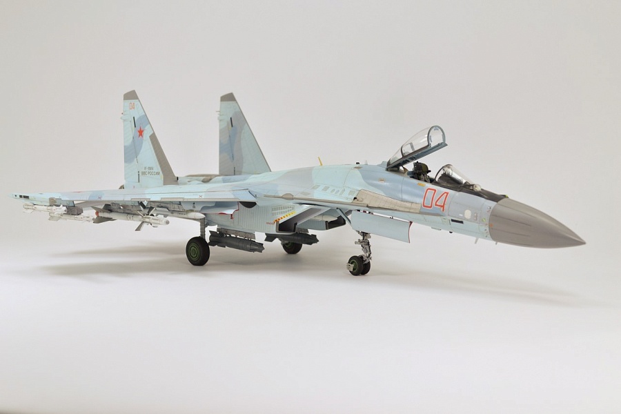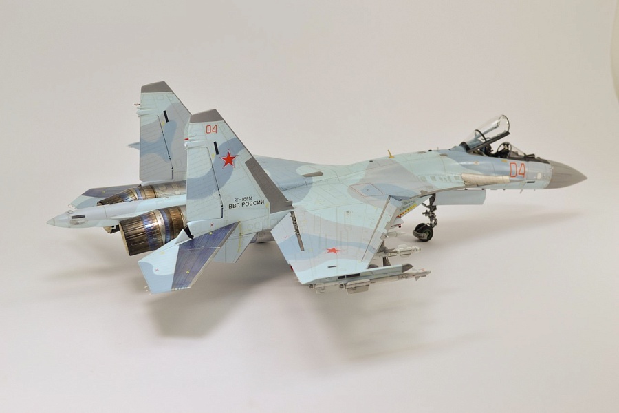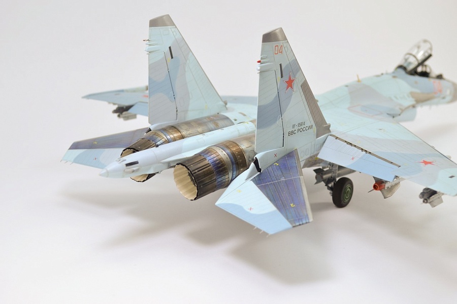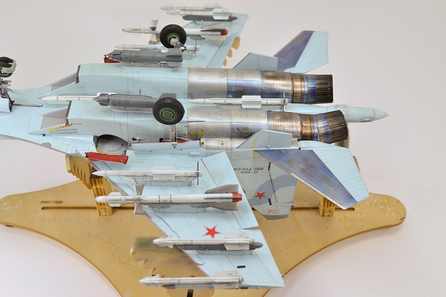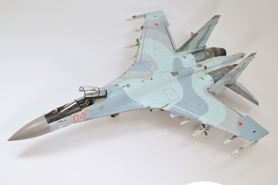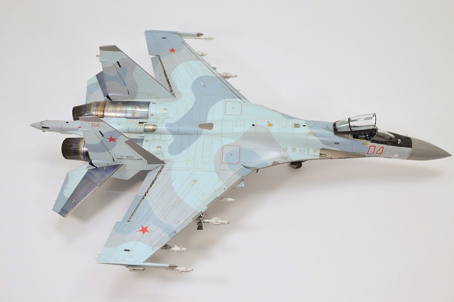 | Всем привет! Представляю на Ваш суд ещё одну очередную модель из семейства Сухого. Модель начал делал полтора года назад и в июне 2018 г. закончил проект. Описание самого кита смысла не вижу на форумах уже высказаны все замечания по нему. В основном модель сделал почти из коробки, с небольшими доработками. Из своих небольших доработок – это: углубил клёпку и немного расшивку, отработал ниши основный стоек, сами ниши, где укладываются колёса, заменил от Wolfpack, по глубине немного по короче, но картину в целом не портит. Основные стойки оставил, как есть, облагораживать не стал, думаю этим уже никого не удивишь, а переднюю отработал. Переделаны узлы креплений поворотов килей, они были просто ужасные. Сделал побольше ВЗ на правом киле, производитель их даёт одинаковыми. На балке между двигателями, блоки выброса ловушек переделал и сделал их с низу. На за концовках задней части килей с внешней стороны установил датчики, которые просто отсутствовали, накладки на килях. Отработал створки ниш основных стоек (замки, датчик, травление). На ВЗ применил выпуклую клёпку от Archer, установил внутрь ВЗ решётки от Су-27 Academy потом оказалось, что зря, там её вроде как нет. Каркас под стёкла, где линза ОЛС, из фототравления, линза от Эльф. Под имитацию датчиков, в передней части фюзеляже сверху и снизу, использовал плоские блёски зелёного оттенка. Привязка к прототипу выбрал Су-35С б/н 04 в Сирии RF-95814. Что использовал: смола - от Amigo Models сопла №48025; - от Wolfpack ниши №48108; - от Archer клёпка №88001;- от Aires катапультное кресло №4263 Декаль от Бегемота №48039. Груновка Mr.Hobby 1200 Краска от Акан (№73169, №63060, №73058, №74032, св.голубой и т. голубой мешал сам), Tamiya (XF-85, XF-3, Х-23), Mr.Hobby №Н11(св. серый и т. серый мешал сам), Alclad (№101,113,107,112,416). Пудреницы от Tamiya №870588,89949. Лак глянцевый Mr.Hobby №Н30. Лак матовый (названия нет). Вроде всё, возможно, что-то и забыл, спрашивайте отвечу! | |