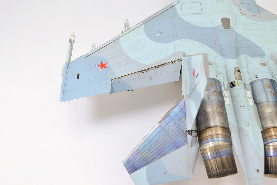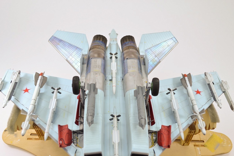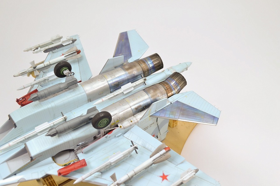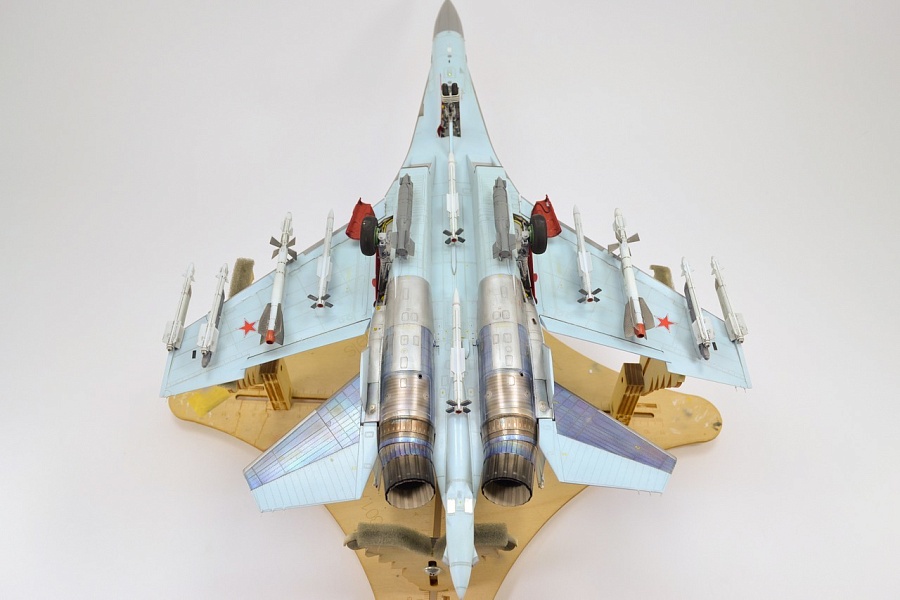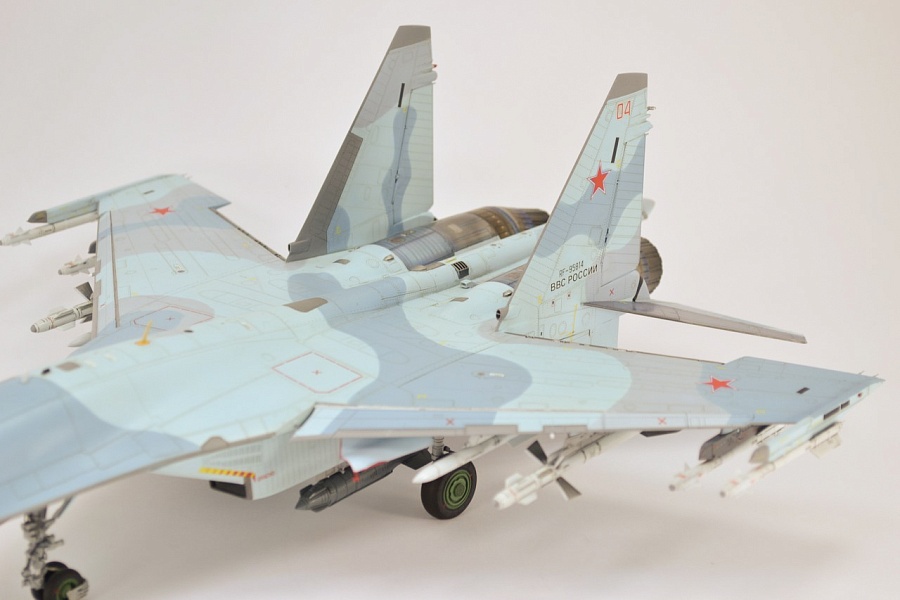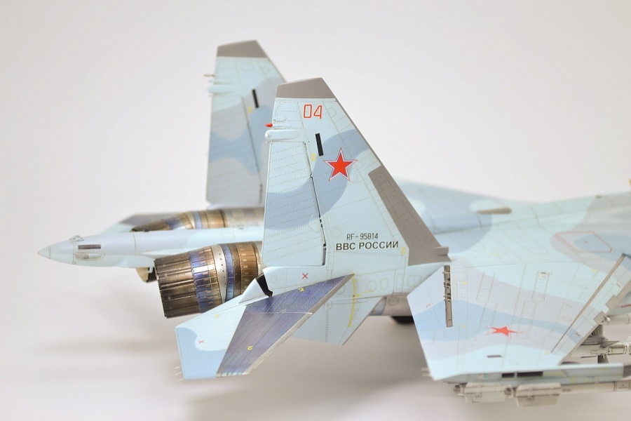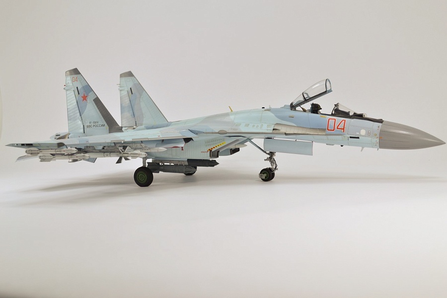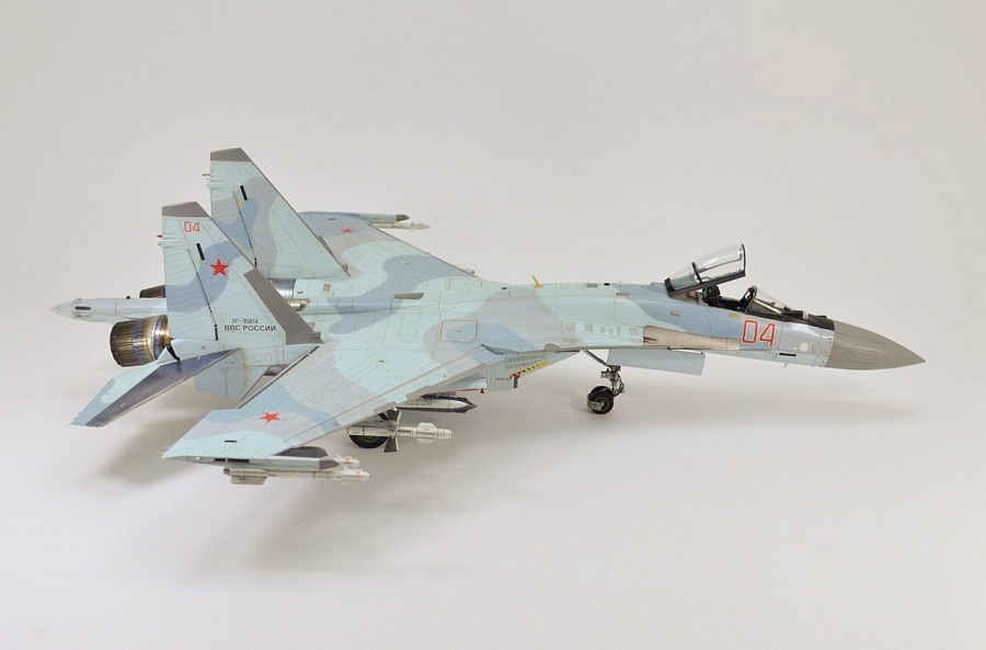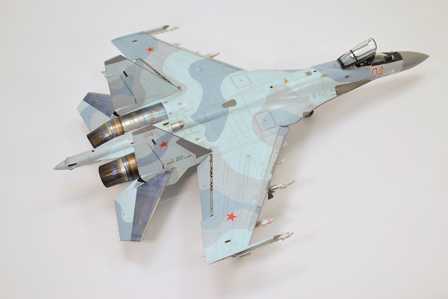 | Всем привет! Представляю на Ваш суд ещё одну очередную модель из семейства Сухого. Модель начал делал полтора года назад и в июне 2018 г. закончил проект. Описание самого кита смысла не вижу на форумах уже высказаны все замечания по нему. В основном модель сделал почти из коробки, с небольшими доработками. Из своих небольших доработок – это: углубил клёпку и немного расшивку, отработал ниши основный стоек, сами ниши, где укладываются колёса, заменил от Wolfpack, по глубине немного по короче, но картину в целом не портит. Основные стойки оставил, как есть, облагораживать не стал, думаю этим уже никого не удивишь, а переднюю отработал. Переделаны узлы креплений поворотов килей, они были просто ужасные. Сделал побольше ВЗ на правом киле, производитель их даёт одинаковыми. На балке между двигателями, блоки выброса ловушек переделал и сделал их с низу. На за концовках задней части килей с внешней стороны установил датчики, которые просто отсутствовали, накладки на килях. Отработал створки ниш основных стоек (замки, датчик, травление). На ВЗ применил выпуклую клёпку от Archer, установил внутрь ВЗ решётки от Су-27 Academy потом оказалось, что зря, там её вроде как нет. Каркас под стёкла, где линза ОЛС, из фототравления, линза от Эльф. Под имитацию датчиков, в передней части фюзеляже сверху и снизу, использовал плоские блёски зелёного оттенка. Привязка к прототипу выбрал Су-35С б/н 04 в Сирии RF-95814. Что использовал: смола - от Amigo Models сопла №48025; - от Wolfpack ниши №48108; - от Archer клёпка №88001;- от Aires катапультное кресло №4263 Декаль от Бегемота №48039. Груновка Mr.Hobby 1200 Краска от Акан (№73169, №63060, №73058, №74032, св.голубой и т. голубой мешал сам), Tamiya (XF-85, XF-3, Х-23), Mr.Hobby №Н11(св. серый и т. серый мешал сам), Alclad (№101,113,107,112,416). Пудреницы от Tamiya №870588,89949. Лак глянцевый Mr.Hobby №Н30. Лак матовый (названия нет). Вроде всё, возможно, что-то и забыл, спрашивайте отвечу! | |