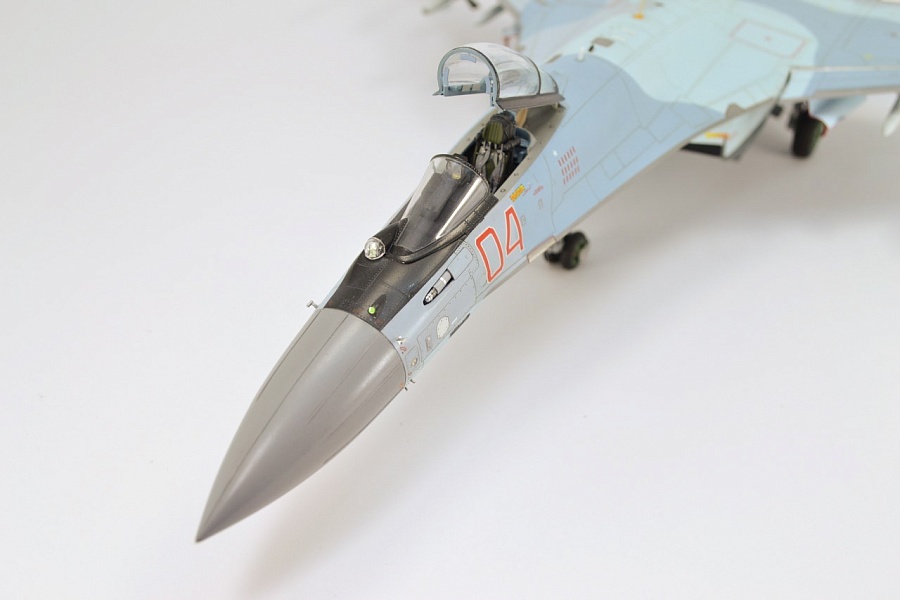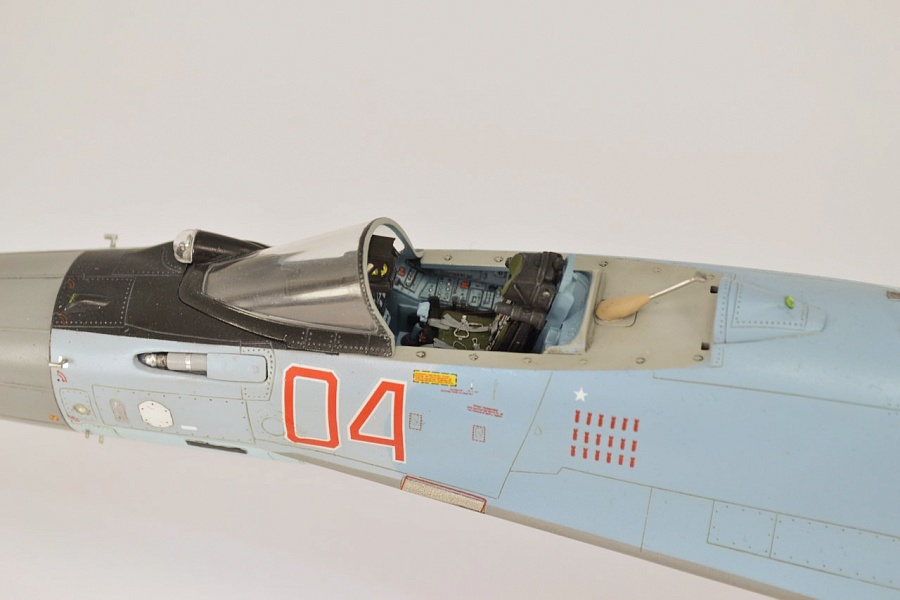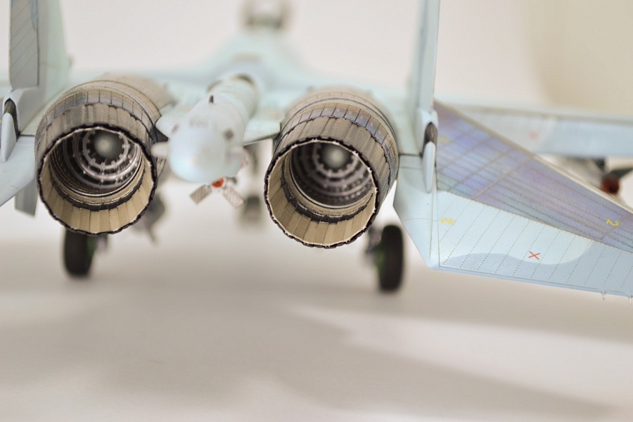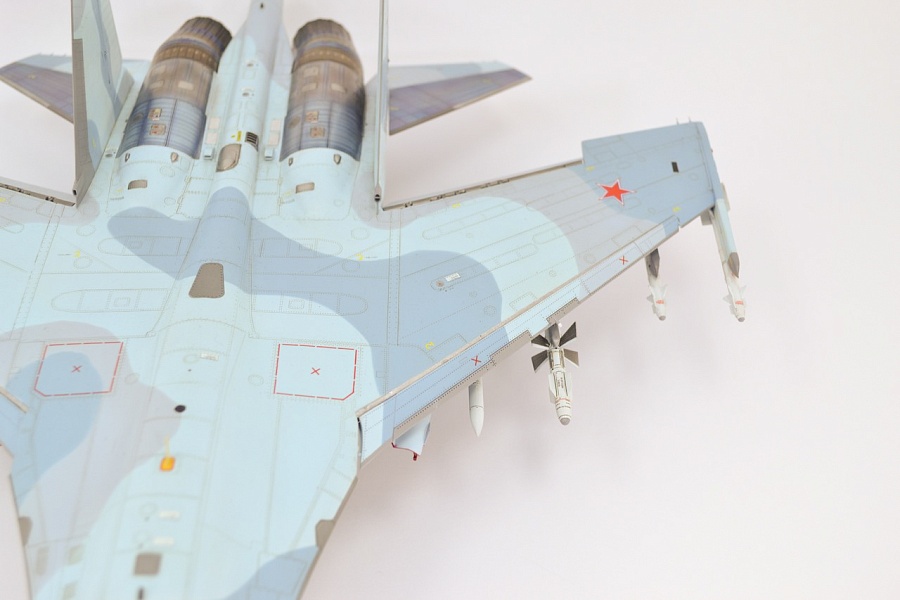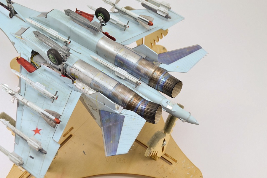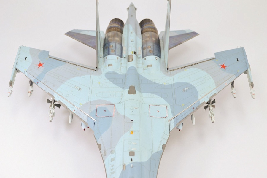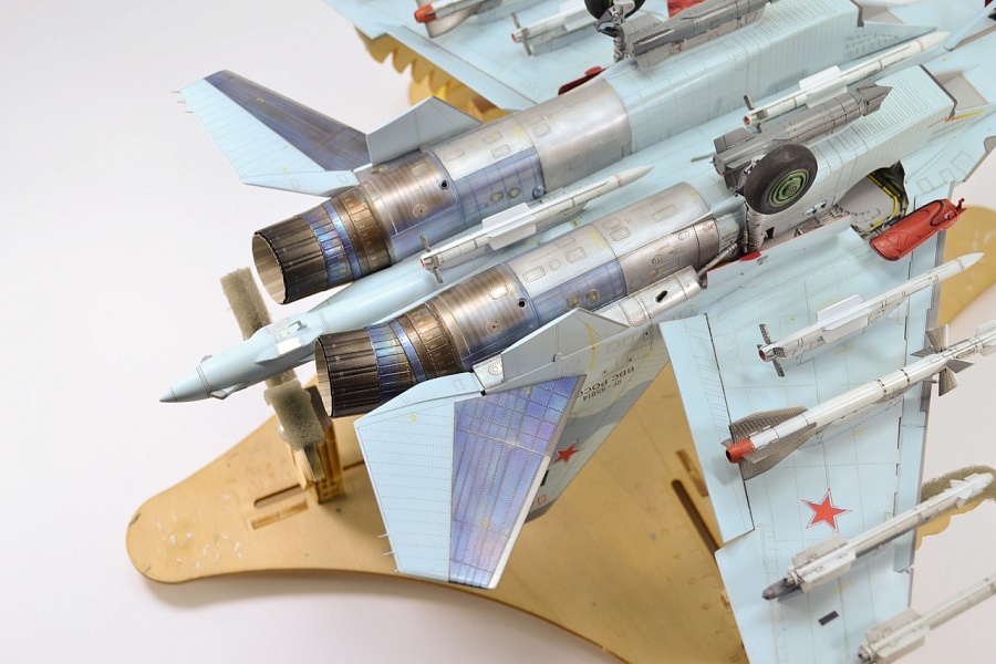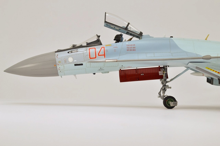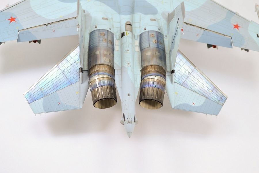 | Всем привет! Представляю на Ваш суд ещё одну очередную модель из семейства Сухого. Модель начал делал полтора года назад и в июне 2018 г. закончил проект. Описание самого кита смысла не вижу на форумах уже высказаны все замечания по нему. В основном модель сделал почти из коробки, с небольшими доработками. Из своих небольших доработок – это: углубил клёпку и немного расшивку, отработал ниши основный стоек, сами ниши, где укладываются колёса, заменил от Wolfpack, по глубине немного по короче, но картину в целом не портит. Основные стойки оставил, как есть, облагораживать не стал, думаю этим уже никого не удивишь, а переднюю отработал. Переделаны узлы креплений поворотов килей, они были просто ужасные. Сделал побольше ВЗ на правом киле, производитель их даёт одинаковыми. На балке между двигателями, блоки выброса ловушек переделал и сделал их с низу. На за концовках задней части килей с внешней стороны установил датчики, которые просто отсутствовали, накладки на килях. Отработал створки ниш основных стоек (замки, датчик, травление). На ВЗ применил выпуклую клёпку от Archer, установил внутрь ВЗ решётки от Су-27 Academy потом оказалось, что зря, там её вроде как нет. Каркас под стёкла, где линза ОЛС, из фототравления, линза от Эльф. Под имитацию датчиков, в передней части фюзеляже сверху и снизу, использовал плоские блёски зелёного оттенка. Привязка к прототипу выбрал Су-35С б/н 04 в Сирии RF-95814. Что использовал: смола - от Amigo Models сопла №48025; - от Wolfpack ниши №48108; - от Archer клёпка №88001;- от Aires катапультное кресло №4263 Декаль от Бегемота №48039. Груновка Mr.Hobby 1200 Краска от Акан (№73169, №63060, №73058, №74032, св.голубой и т. голубой мешал сам), Tamiya (XF-85, XF-3, Х-23), Mr.Hobby №Н11(св. серый и т. серый мешал сам), Alclad (№101,113,107,112,416). Пудреницы от Tamiya №870588,89949. Лак глянцевый Mr.Hobby №Н30. Лак матовый (названия нет). Вроде всё, возможно, что-то и забыл, спрашивайте отвечу! | |