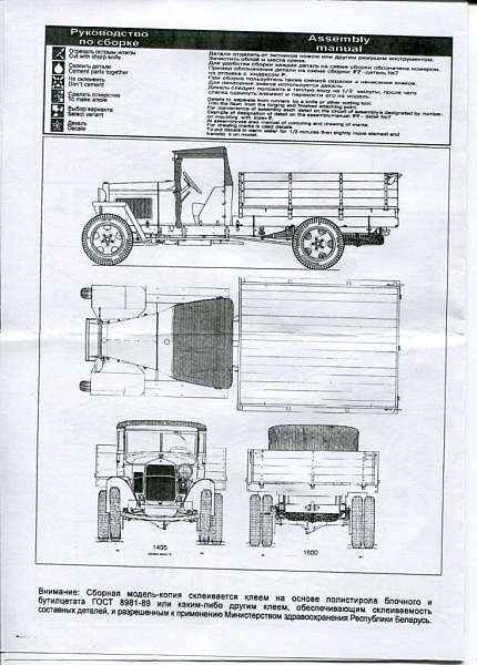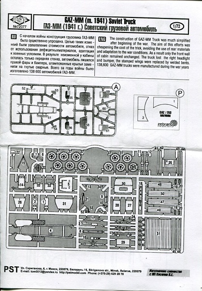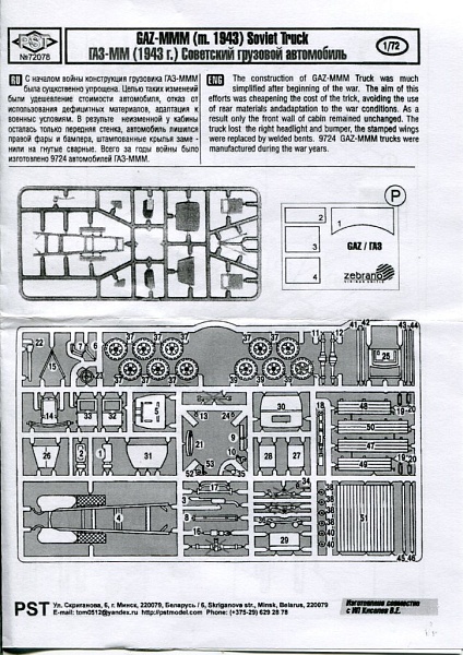 | Сразу объясню, почему в одном обзоре две модели..... В разных коробках одинаковые детали, т.е. купив любой из этих наборов можно собрать Газ-ММ, Газ-МММ а так же, приятный нежданчик, Газ-АА или Газ-ААА.......... Разница только в инструкции и "остеклении", ещё один нежданчик от PST...... И самое интересное- ДЕКАЛЬ............. Вот такой вот сюпрайз преподнесла фирма PST, выпустив эту модель..... Что имеем в коробках...... Две рамки с деталями, побольше тёмно-серого цвета, где есть всё для сборки Газ-АА или Газ-ААА и поменьше, светло-серого цвета, где и находятся детали тех самых Газ-ММ и МММ......... А именно: рама, крылья, детали кабины, с дверьми или без, дуга с одной фарой................ Качество деталей на маленьком литнике, скажем прямо- на троечку.... Хотя никаких глобальных проблем нет, просто облой, замыленость, благо деталей мало и трудностей, довести их до ума, труда не составит... А вот рамка с остальными деталями вызывает двоякое впечатление...... Много мелких деталей и неплохо всё деталезированно, но всё таки грубовато..... Есть местами облой и непроливы..... Хотя по сравнением с их же ЗиСами, это- шаг вперёд................ Думаю на четвёрочку потянет.................... Отдельно хочется сказать о колёсах, вот тут PST заслуживает похвалы. Конечно не как из смолы, но и не "игрушечные", как у ЗиСов......... На фотках, для сравнения, колесо от "ЗиПа" "Красный треугольник".... Остекление- обычная плёнка с нарисованным контуром, ничего оригинального........ Инструкция- лист А4 сложенный пополам, с чётким рисунком...... А вот ДЕКАЛЬ, это сюрприз, так сюрприз........... Во первых- обилие надписей, явно тут ни к месту.... Во вторых- шашечки (уже знаю куда пристою :-))...), и обнаруженное в сети фото( крайнее)...... ;-)) Пока ни чего сказать о собираемости этой модели сказать не могу, но скажу точно- это не из разряда "Моя первая модель"...... :-)) Вот такая вот интересная новинка от PST.................. |