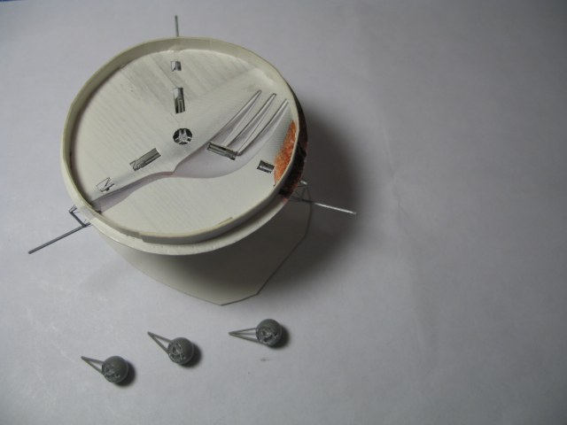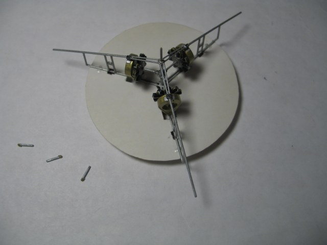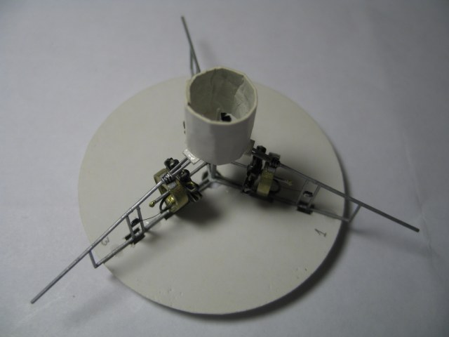 Остаётся добавить верхнюю часть конструкции - несущие винты и "корзину"-гондолу наблюдателя.