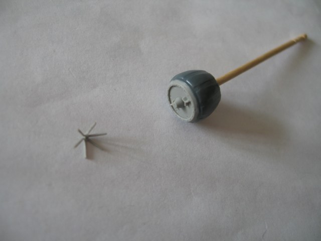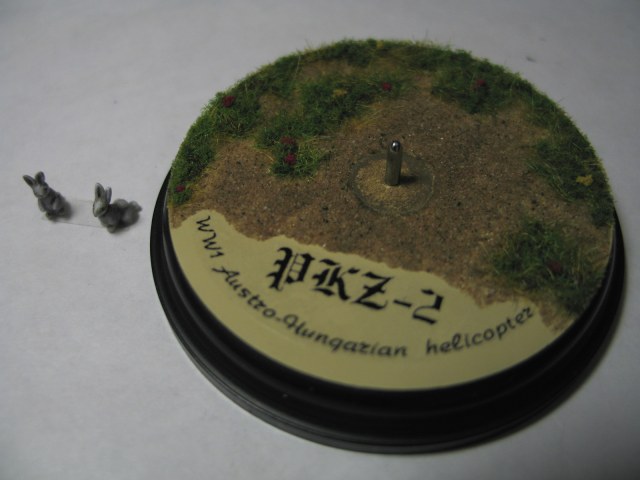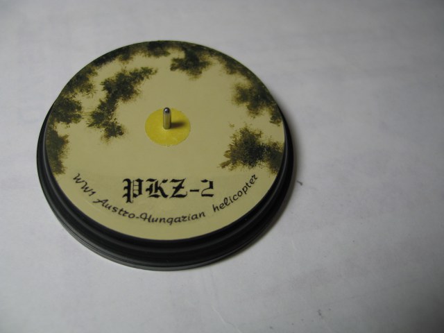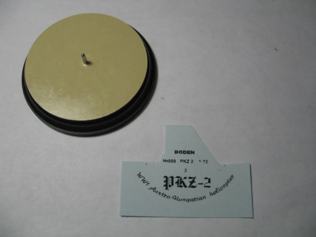 Проблема в том, что фирма "Roden", хоть и предоставила пластмассовую заготовку для основания, но почему-то совершенно не предусмотрела фиксацию модели на нём. Имеется по центру лишь странное углубление, диаметр коего совершенно не соответствует размеру центрального амортизатора вертолёта.