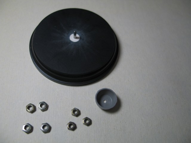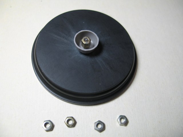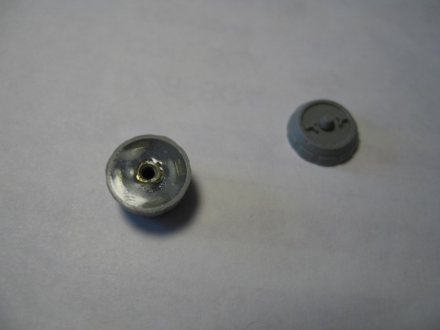 Зашпаклюем углубление и подготовим дно центрального амортизатора для фиксации на штифте, добавив ещё и балласт из гаек. (Жаль изводить столько гаек, но на что только не пойдёшь ради искусства!)