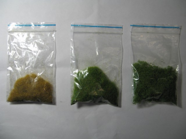 Саму траву изобразим при помощи специальных синтетических присыпок (клеим при помощи пинцета на капли клея ПВА):